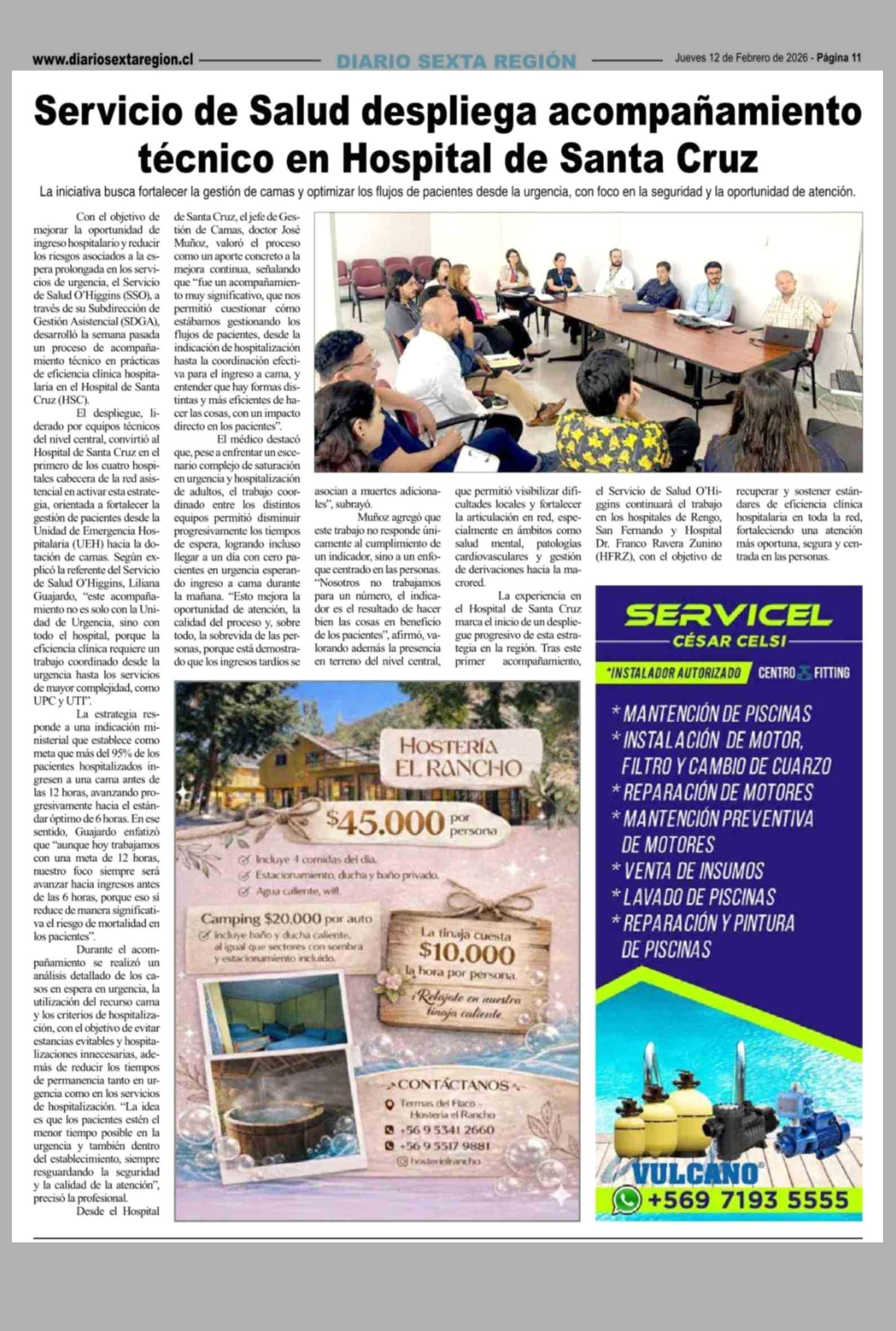 Servicio de Salud despliega acompañamiento técnico en Hospital de Santa Cruz 12-02-2026 Diario VI Región |