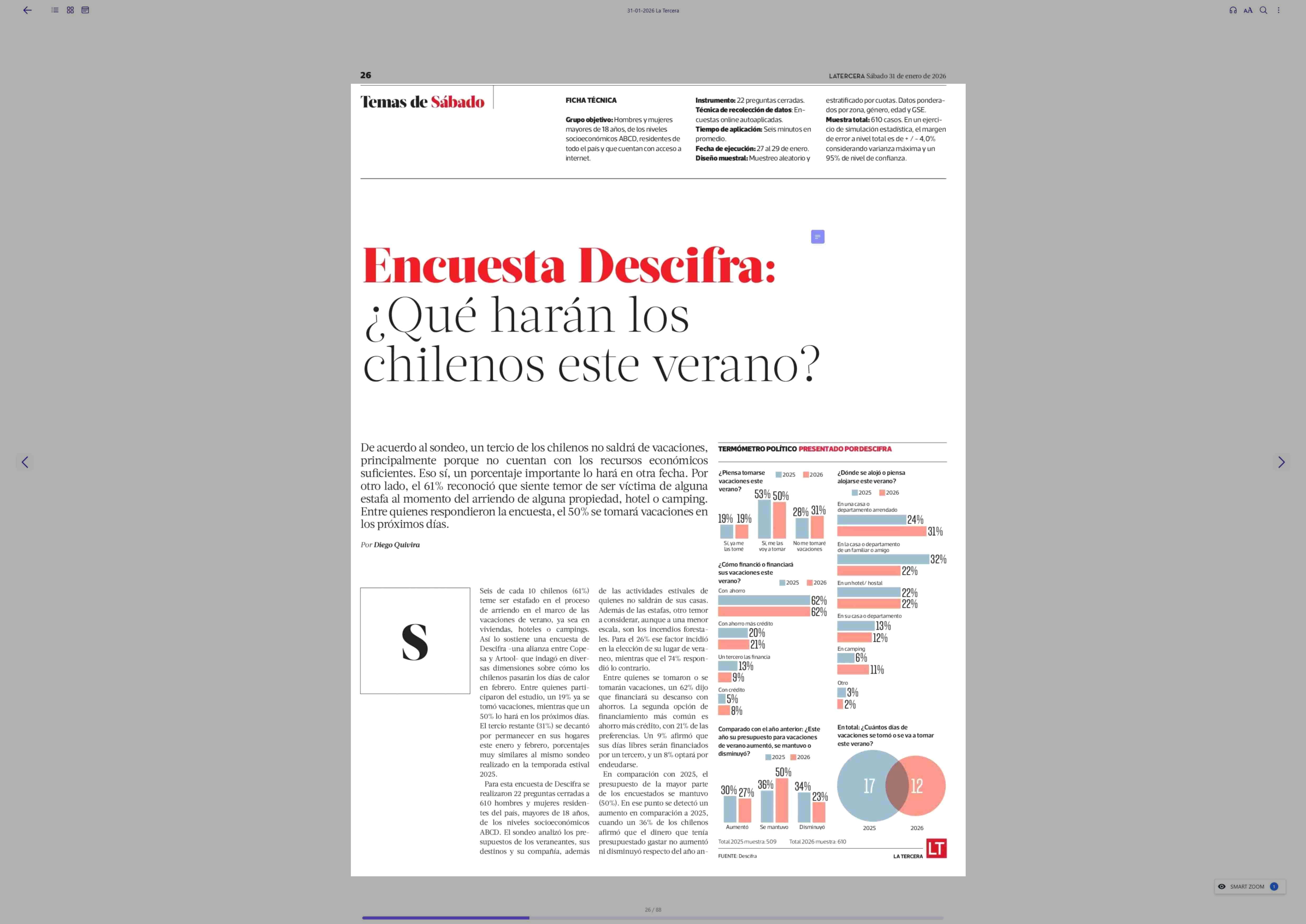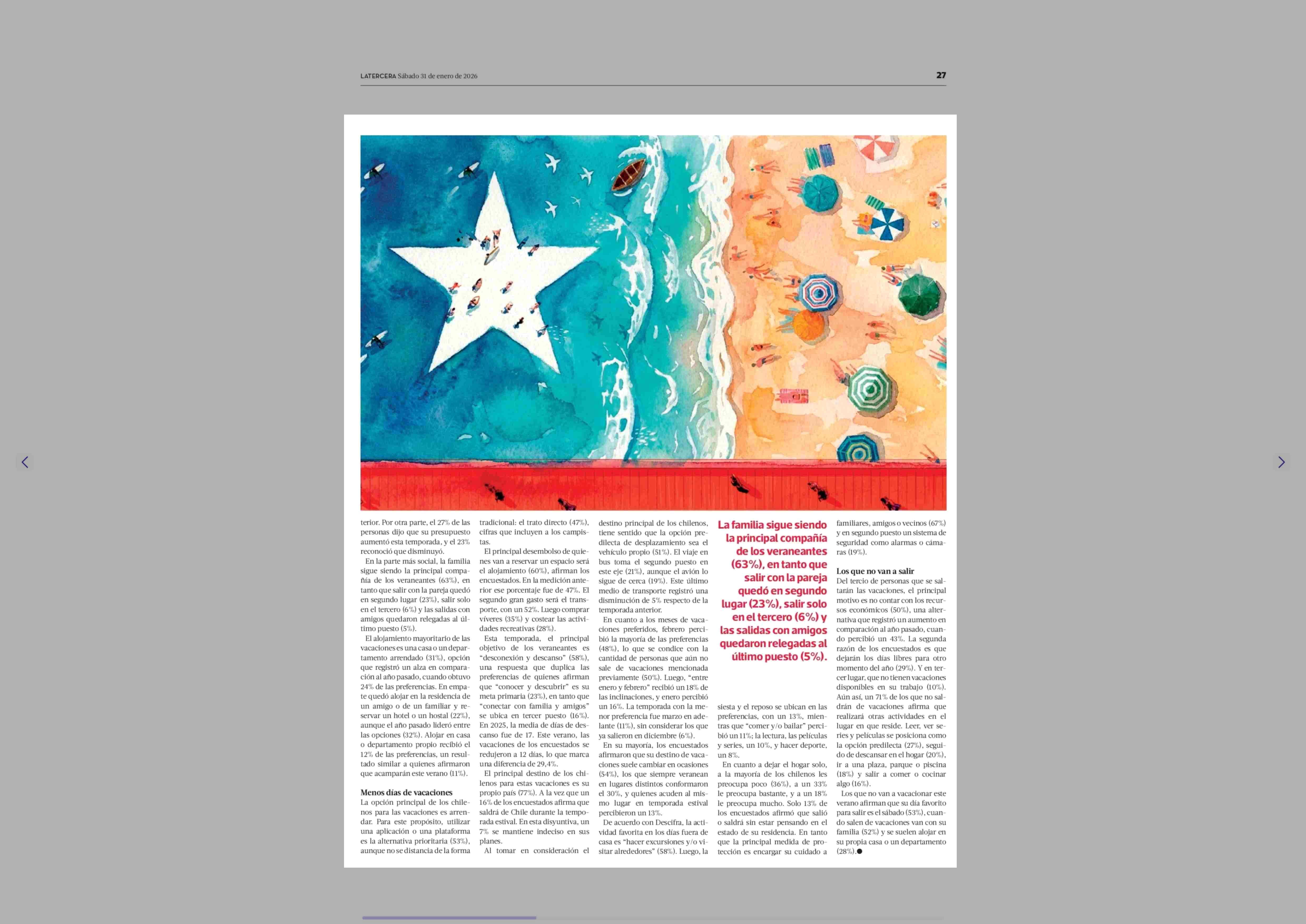 Encuesta Desciíra: ¿Qué harán los | chilenos este verano? 31-01-2026 La Tercera |