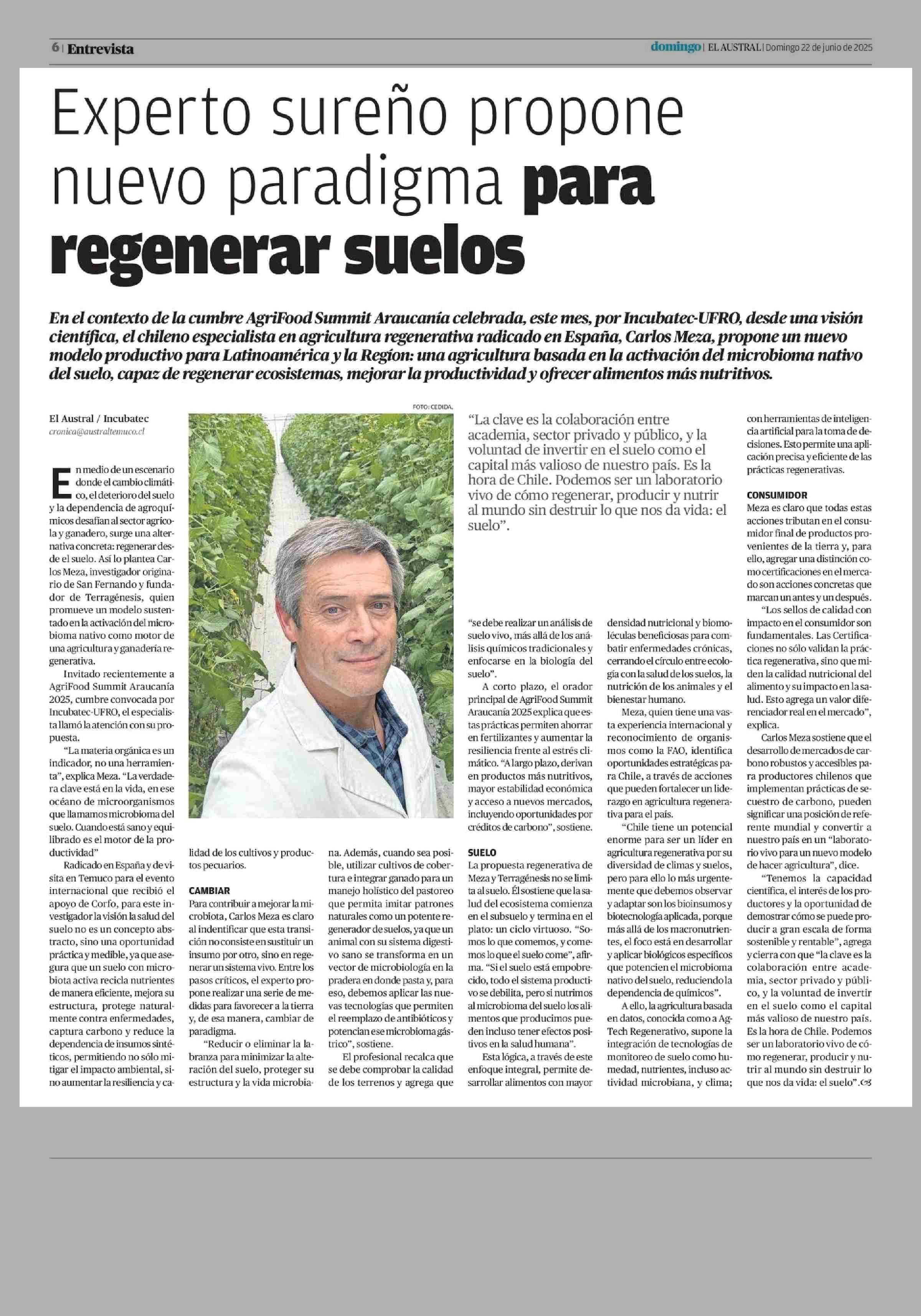 Experto sureño propone nuevo paradigma para regenerar suelos 22-06-2025 El Austral de la Araucanía |