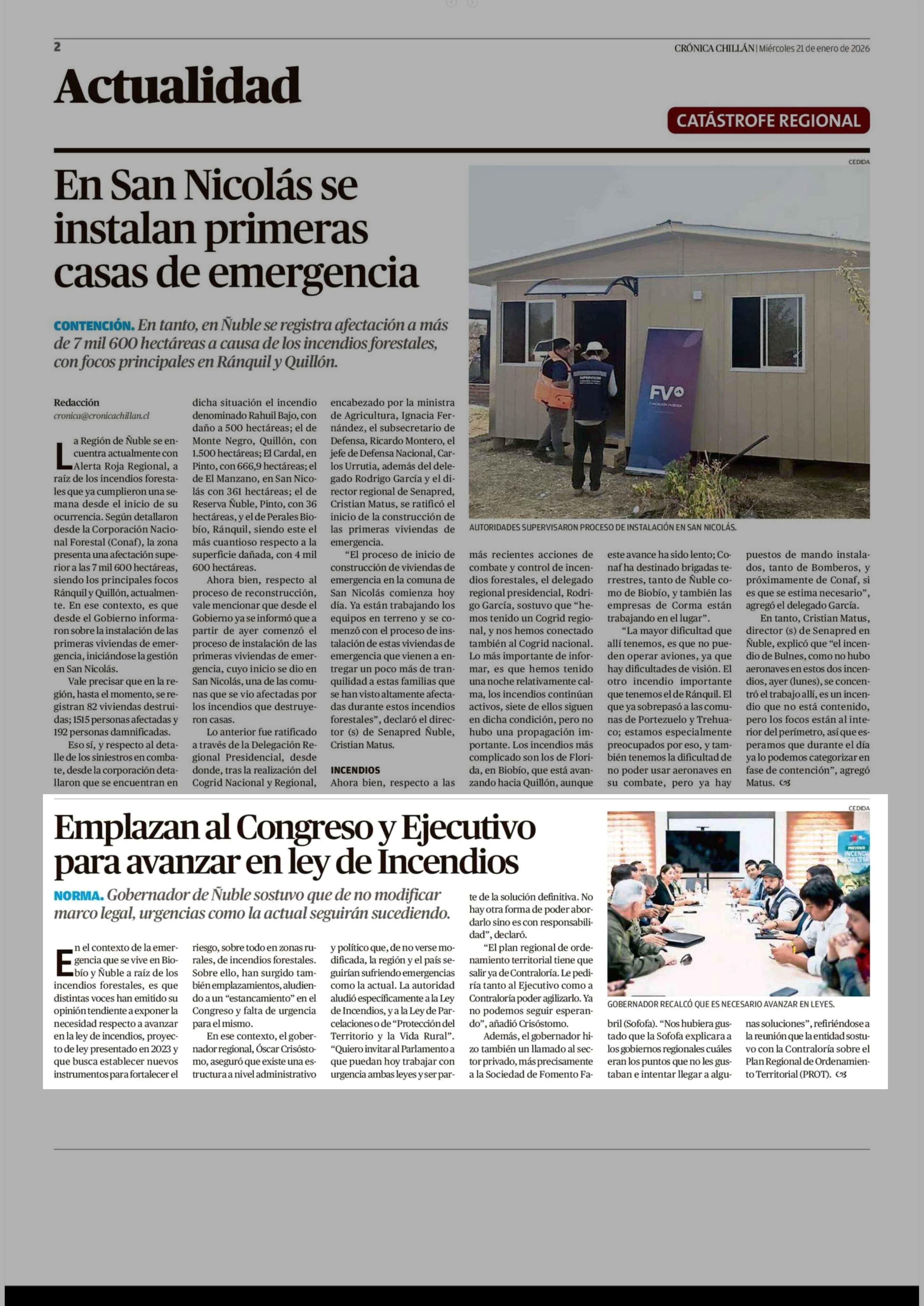 Emplazan al Congreso y Ejecutivo para avanzar en ley de Incendios 21-01-2026 Crónica de Chillán |