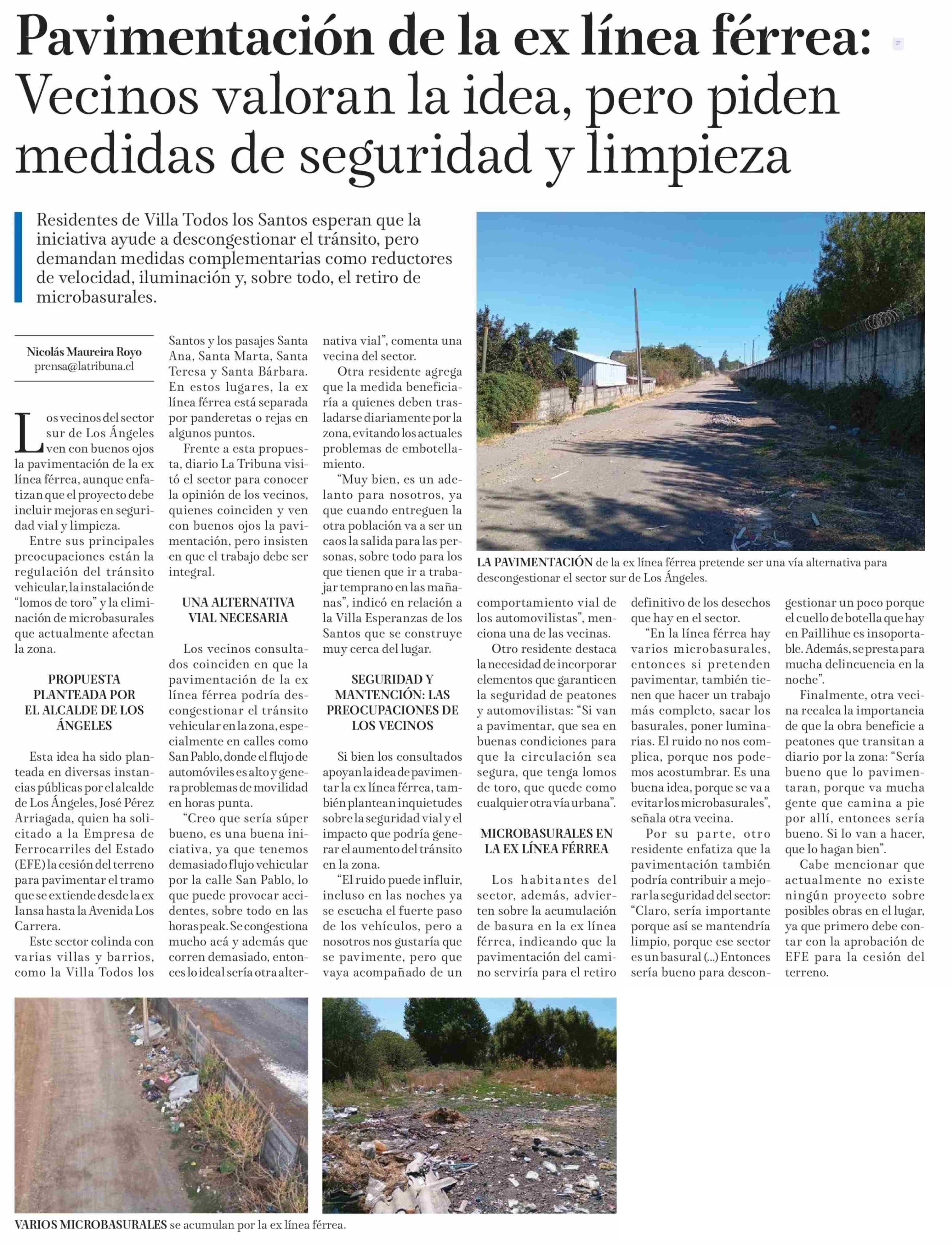 Pavimentación de la ex línea férrea: Vecinos valoran la idea, pero piden medidas de seguridad y limpieza 12-03-2025 La Tribuna |