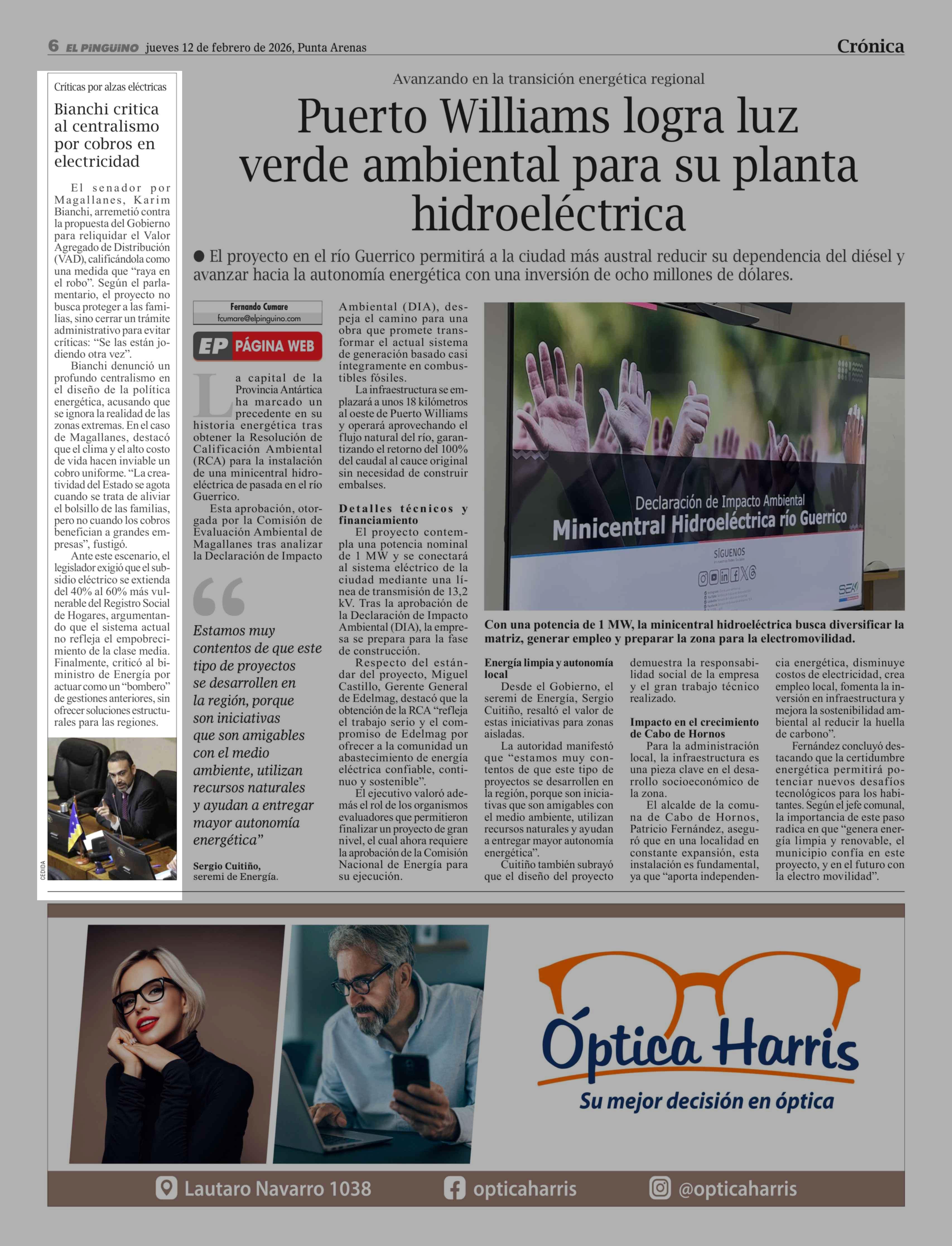 Bianchi critica al centralismo por cobros en electricidad 12-02-2026 El Pingüino |