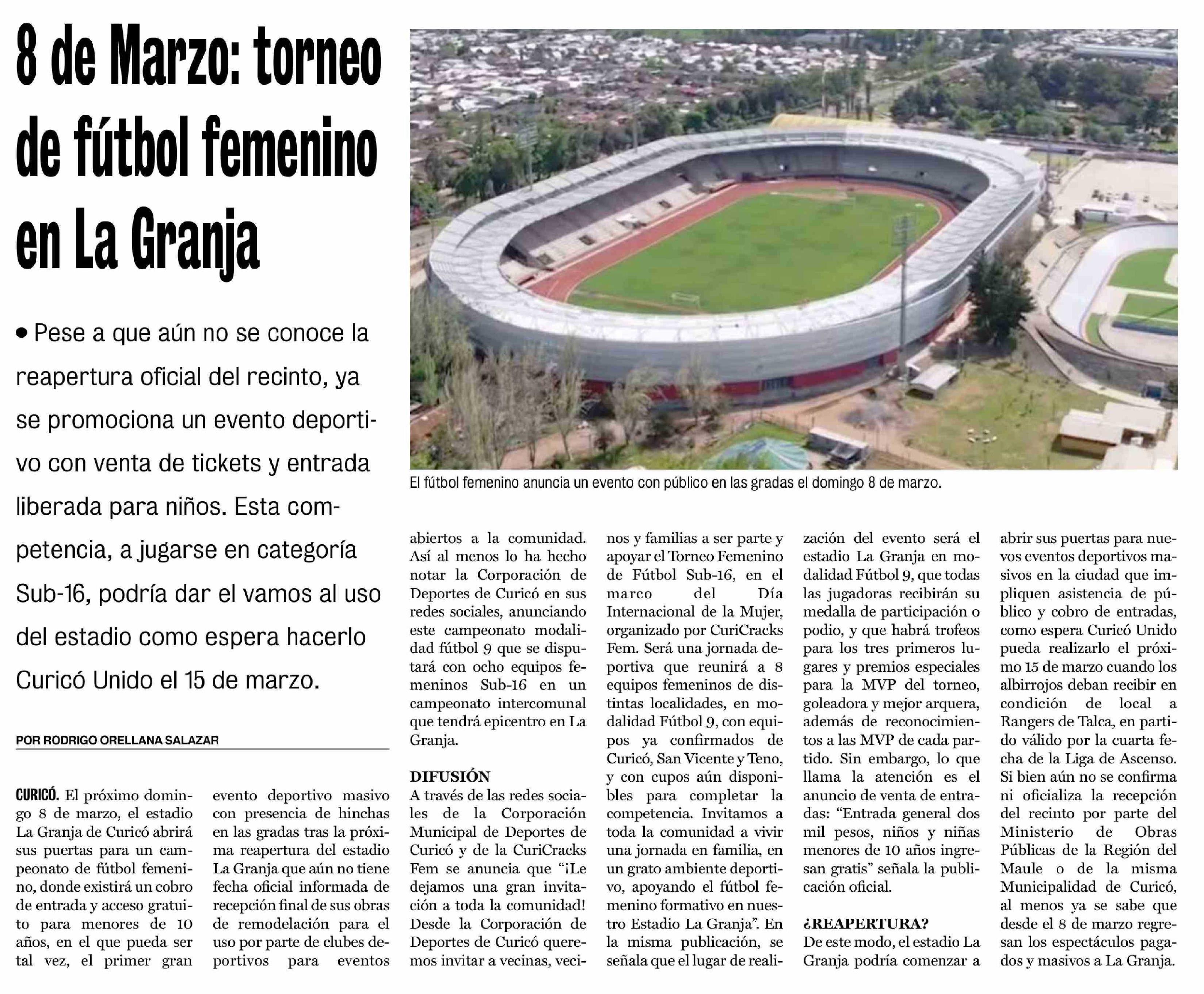 8 De Marzo: torneo de fútbol femenino en La Granja 16-02-2026 La Prensa de Curicó |