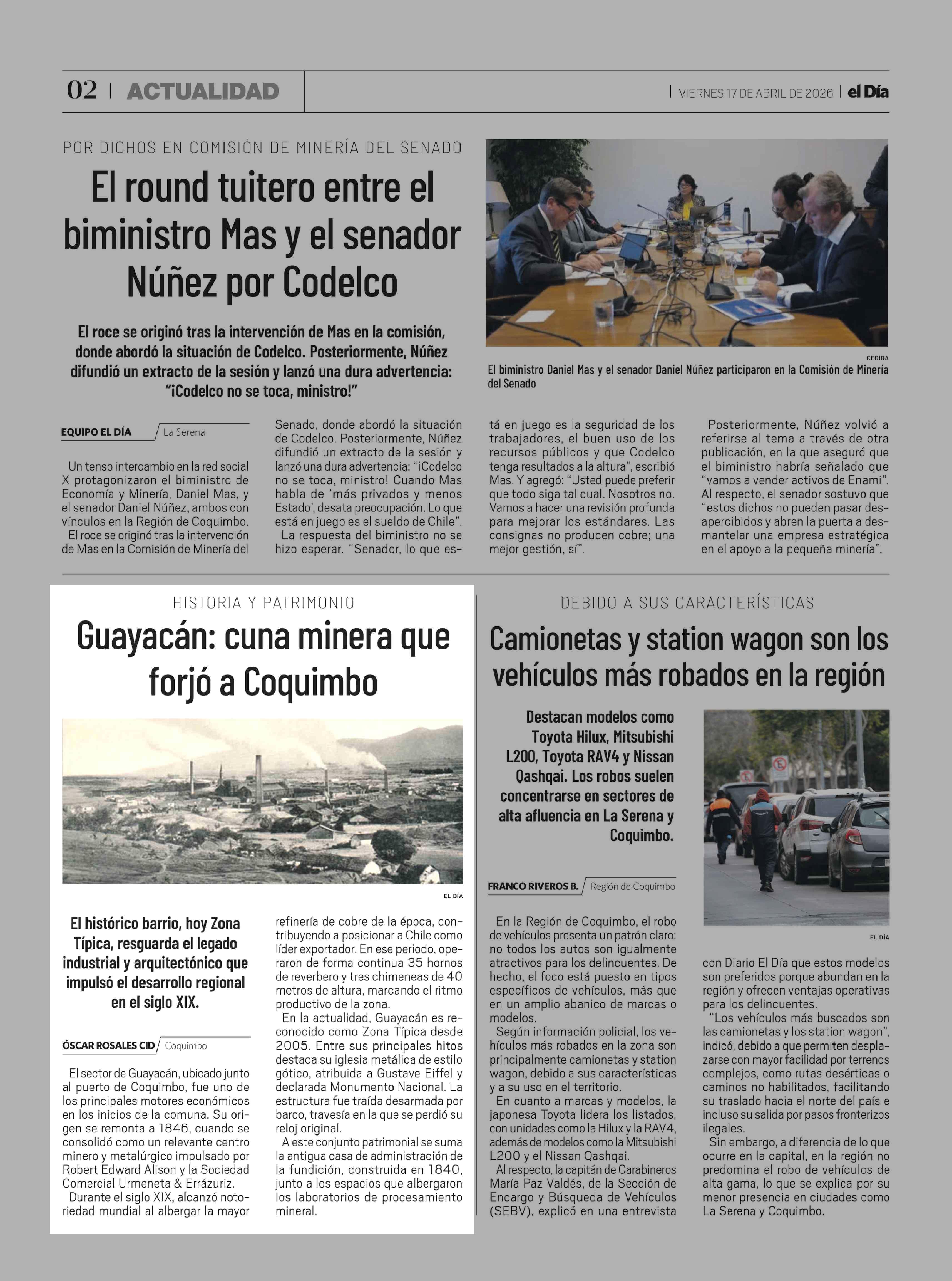 Guayacán: cuna minera que forjó a Coquimbo 17-04-2026 El Día |