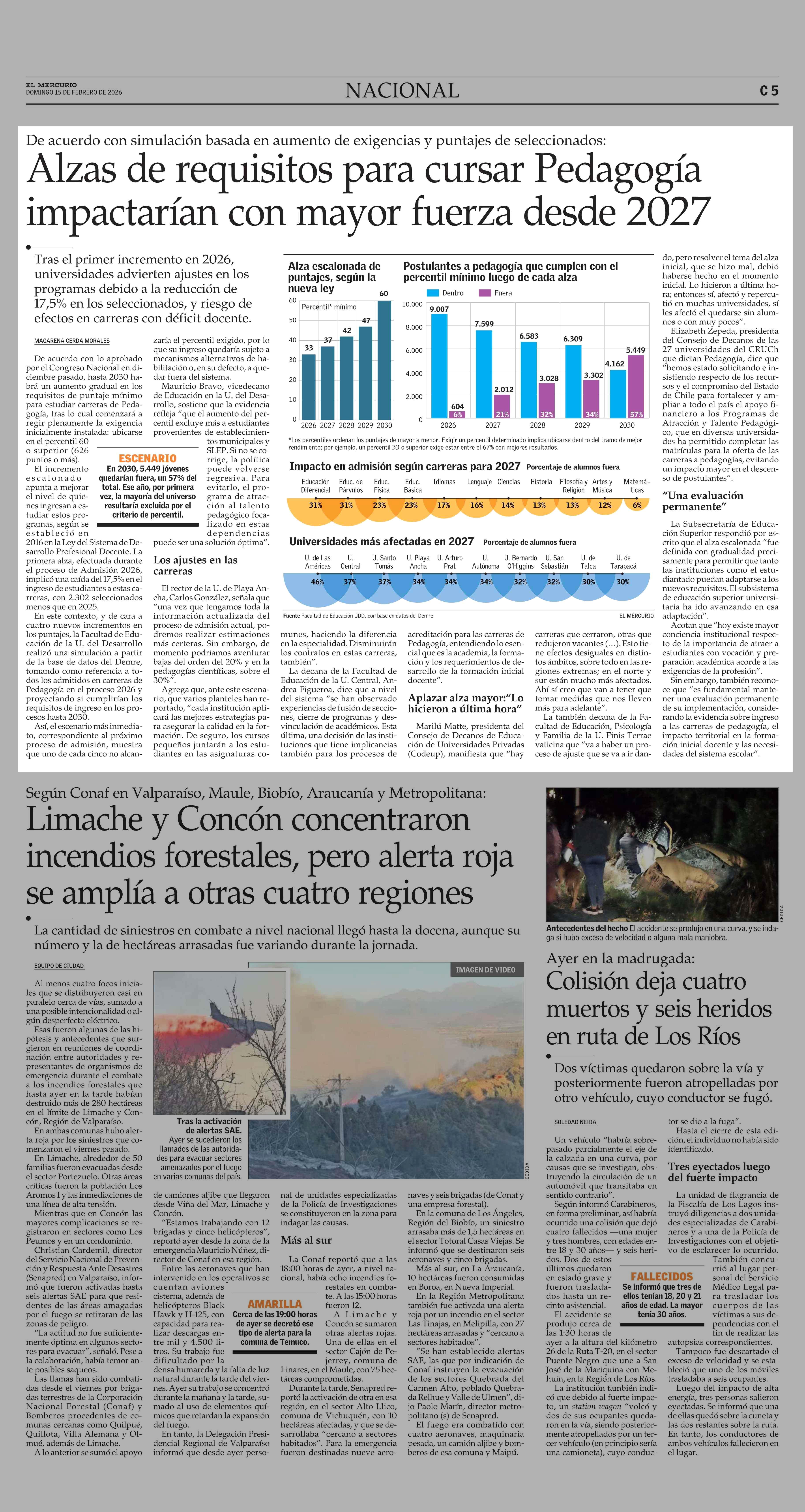 Alzas de requisitos para cursar Pedagogía impactarían con mayor fuerza desde 2027 15-02-2026 El Mercurio |