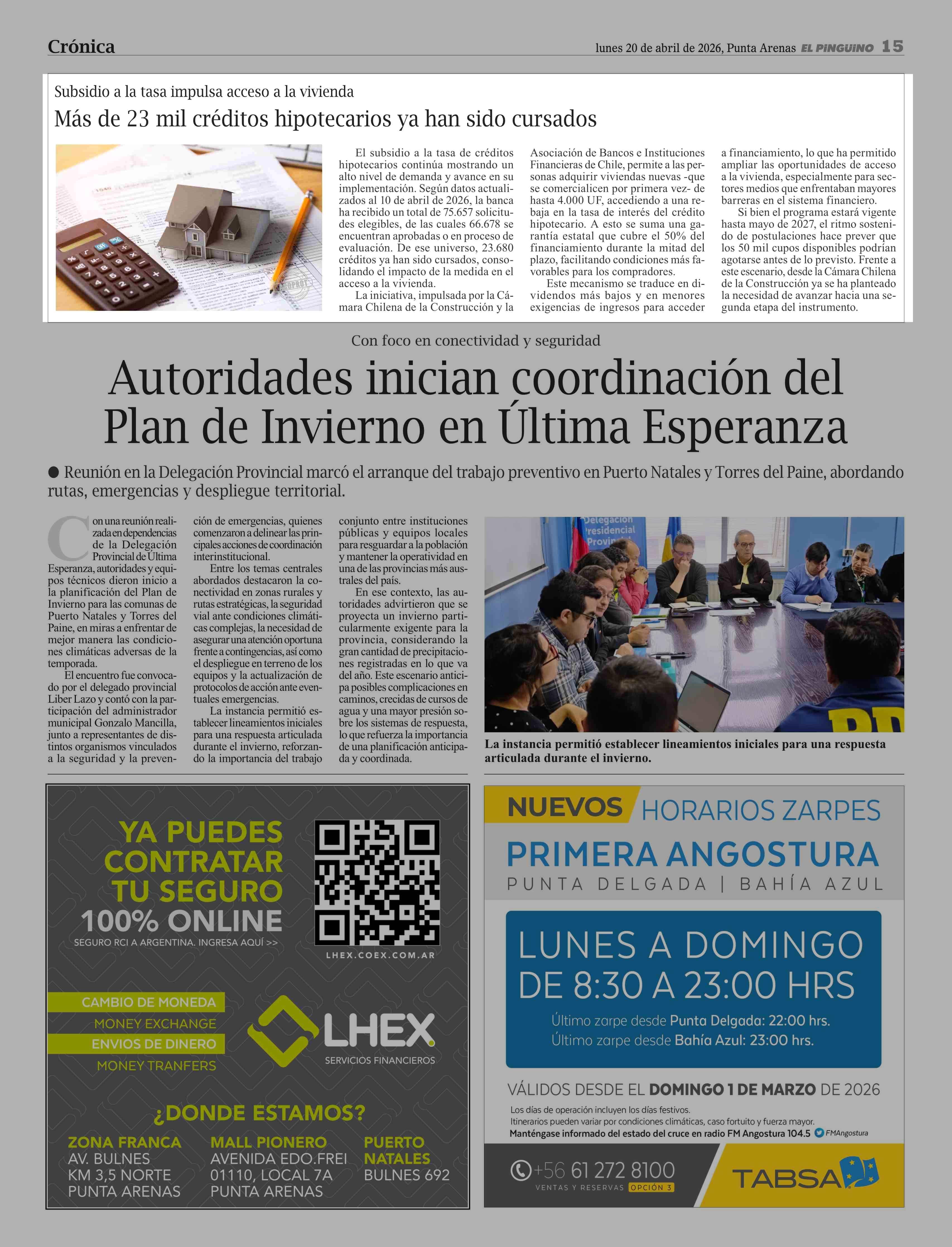 Más de 23 mil créditos hipotecarios ya han sido cursados 20-04-2026 El Pingüino |