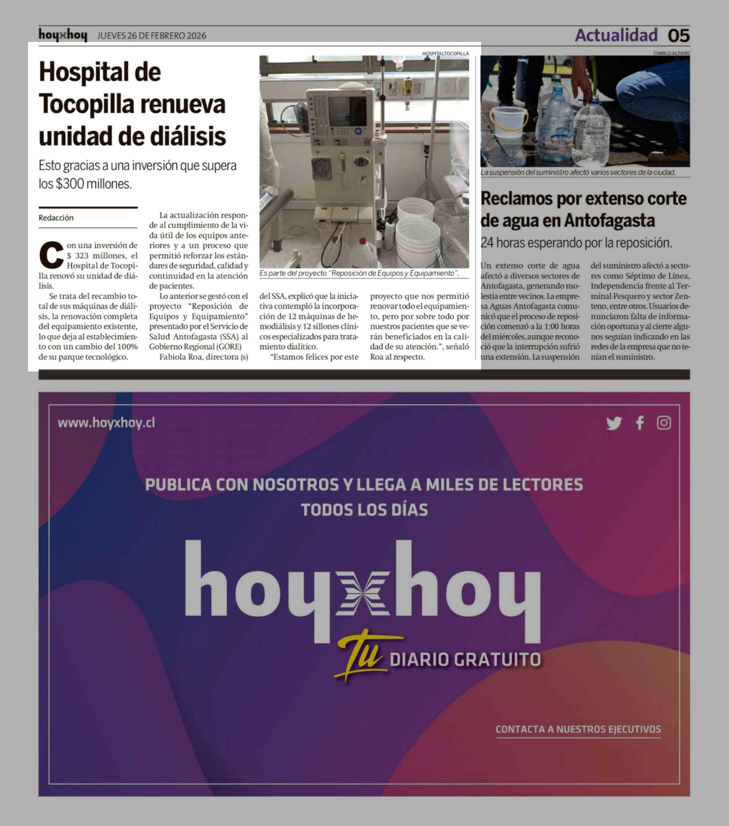 | Título: | Hospital de Tocopilla renueva unidad de diálisis |