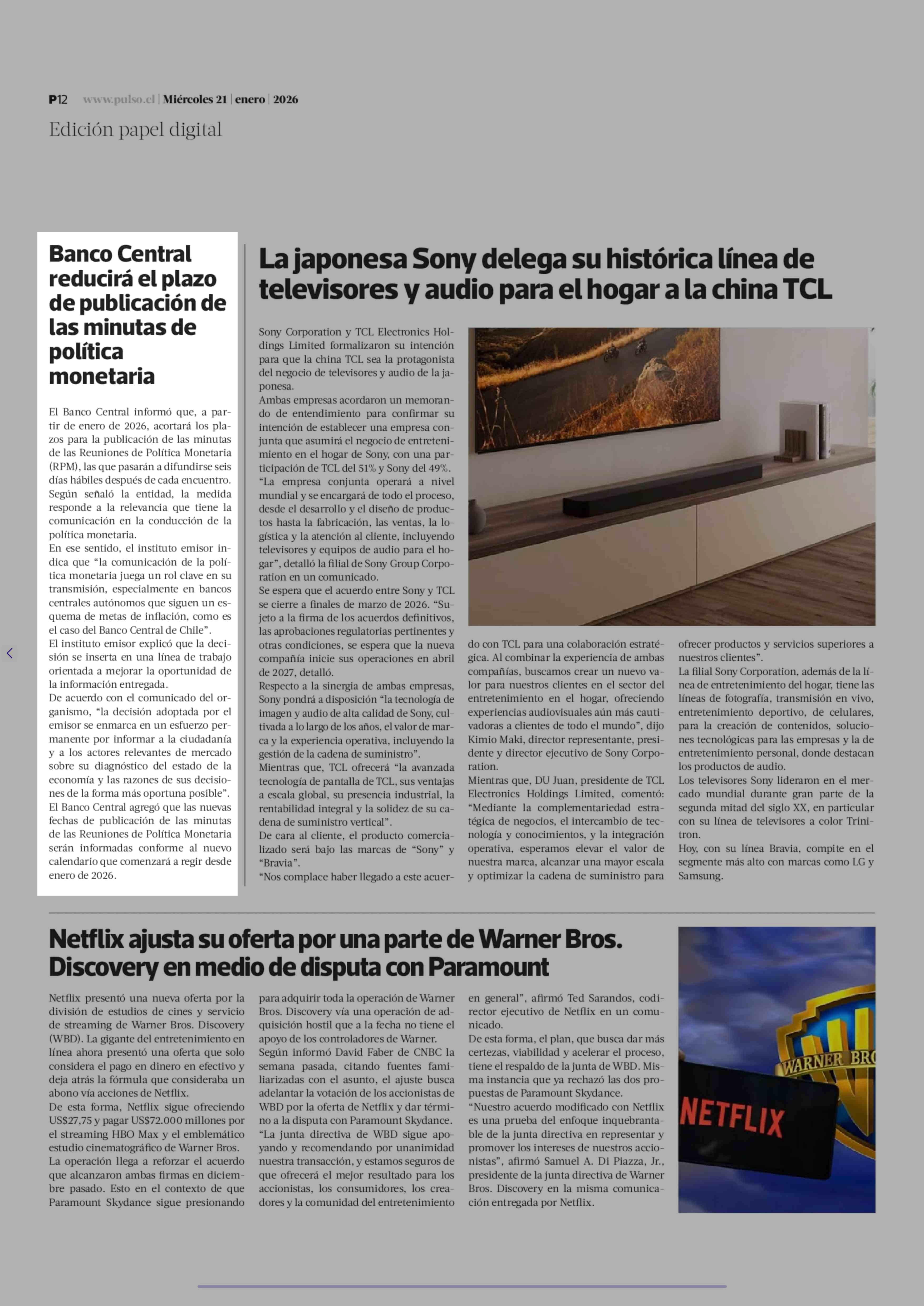Fuente: La Tercera (La Tercera - Pulso) Página(s): 12