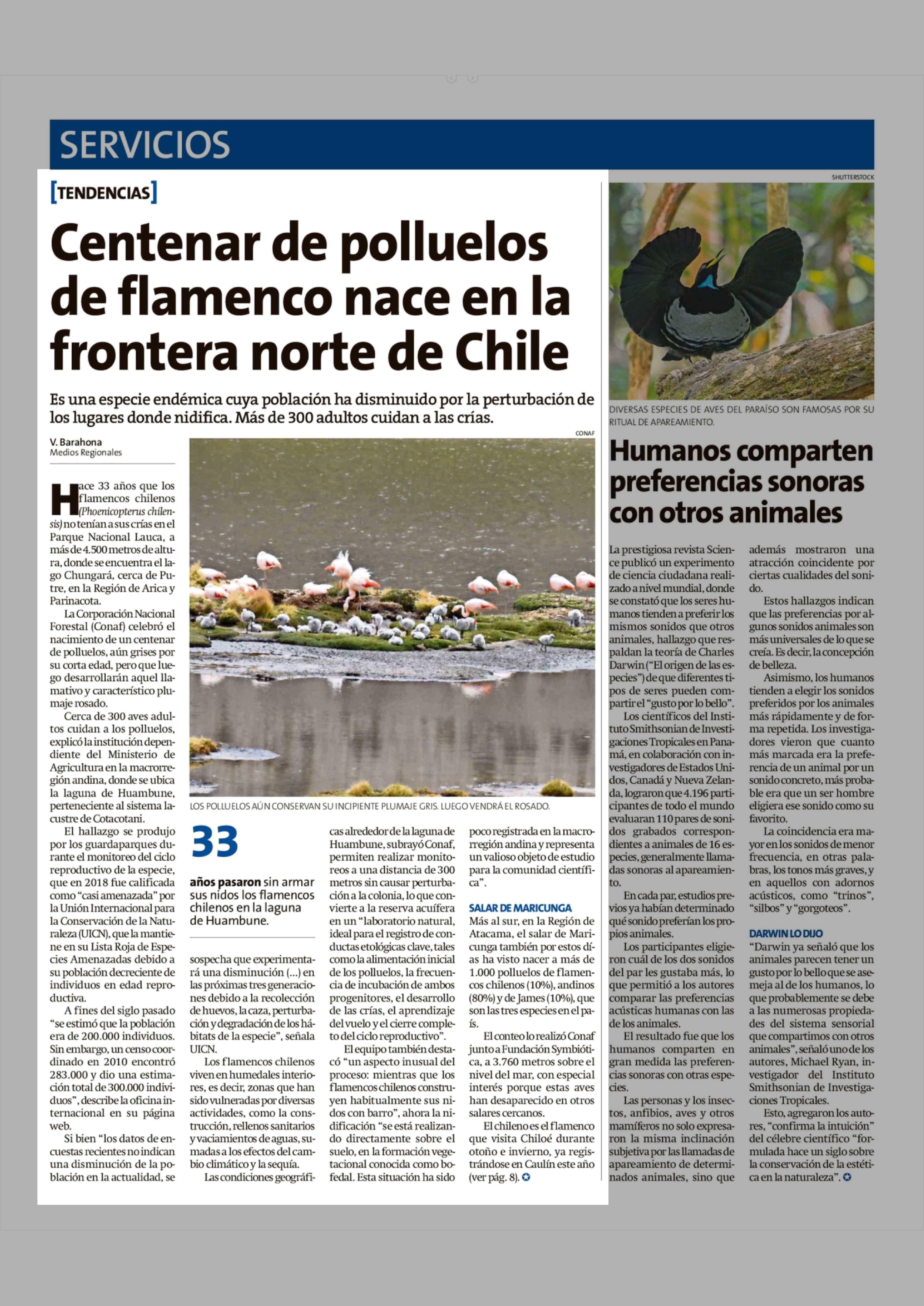 Centenar de polluelos de flamenco nace en la frontera norte de Chile 22-03-2026 La Estrella de Chiloé |