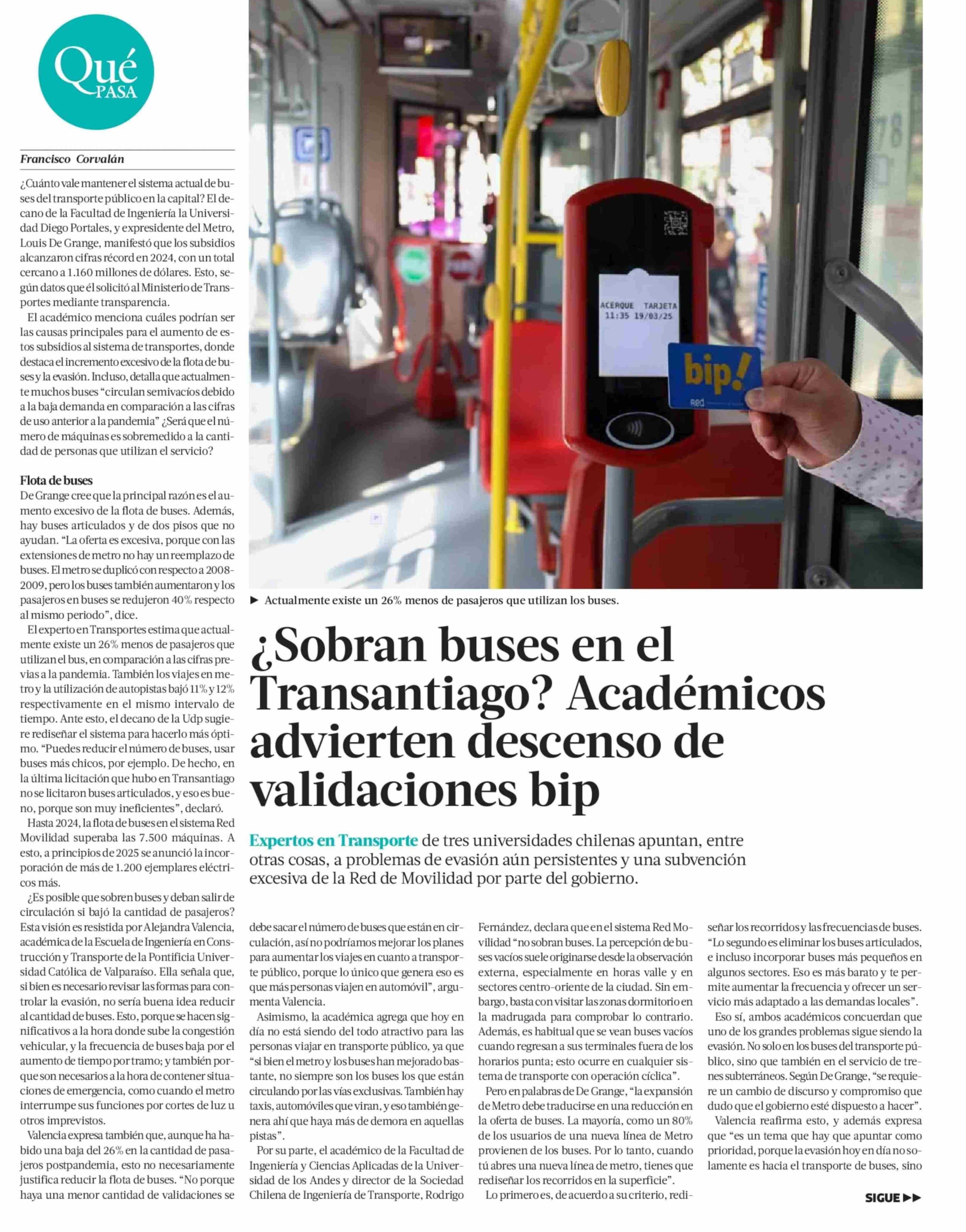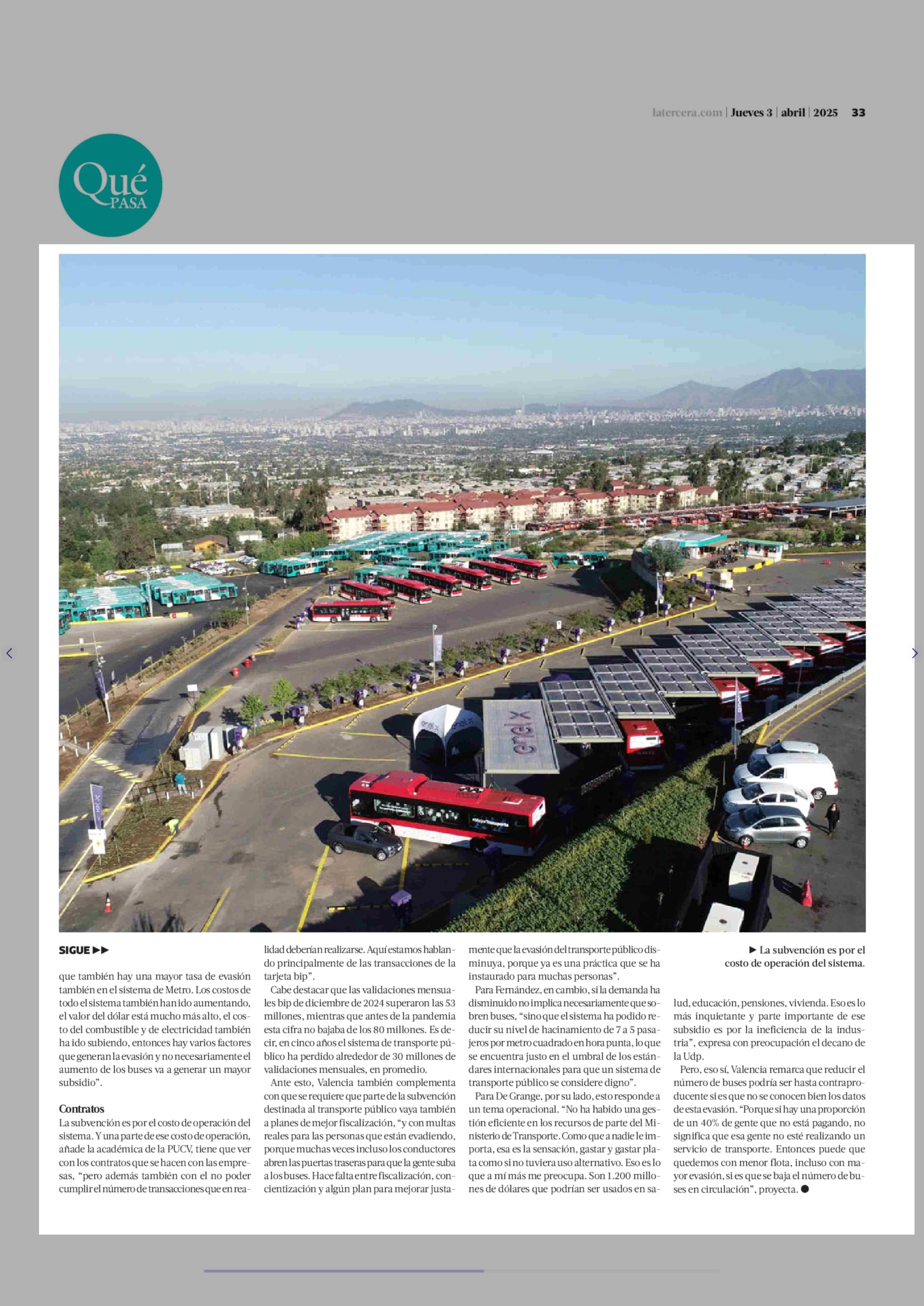 ¿Sobran buses en el Transantiago? Académicos advierten descenso de validaciones bip 03-04-2025 La Tercera |