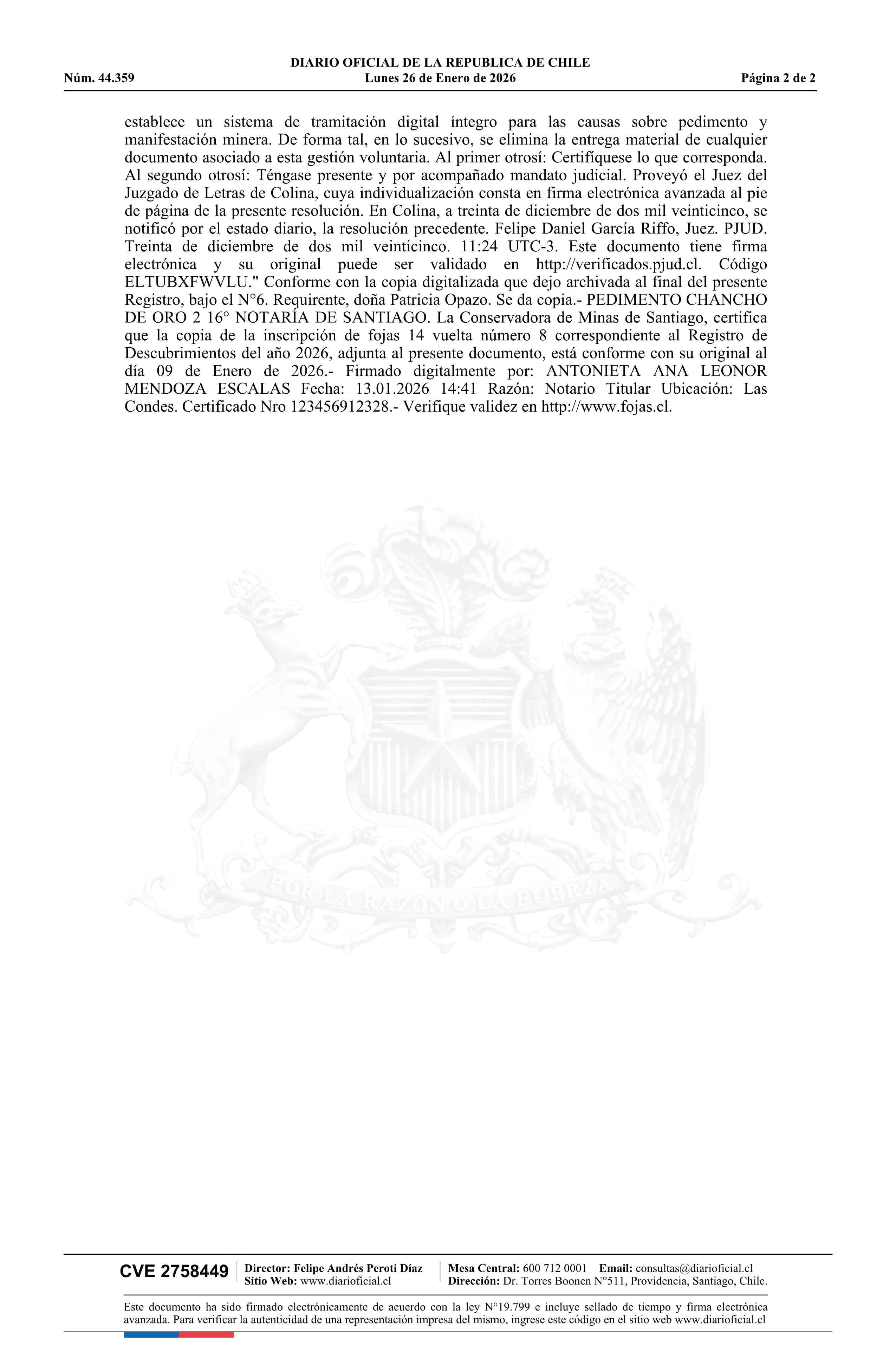 26-01-2026 DIARIO OFICIAL CHILE - BOLETÍN OFICIAL DE MINERÍA
