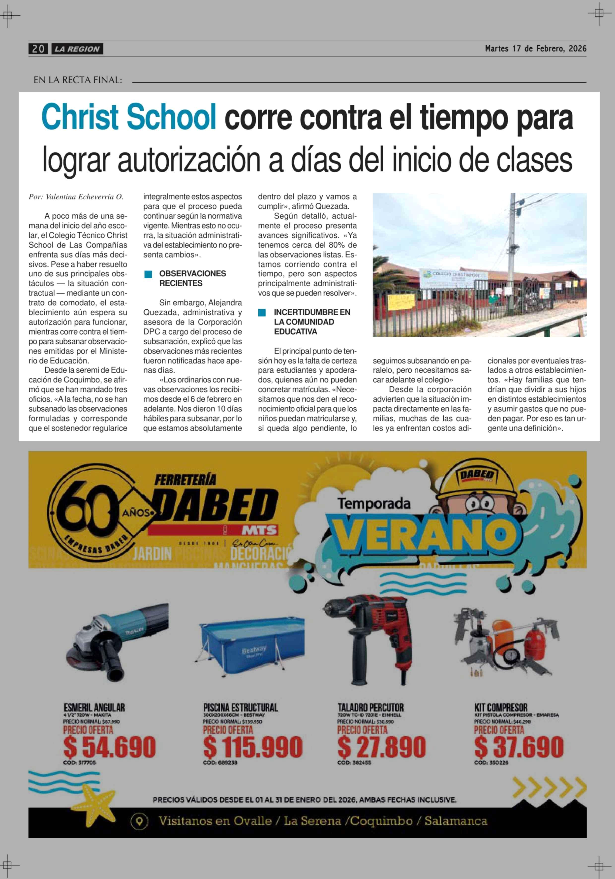 Título: Christ School corre contra el tiempo para lograr autorización a días del inicio de clases