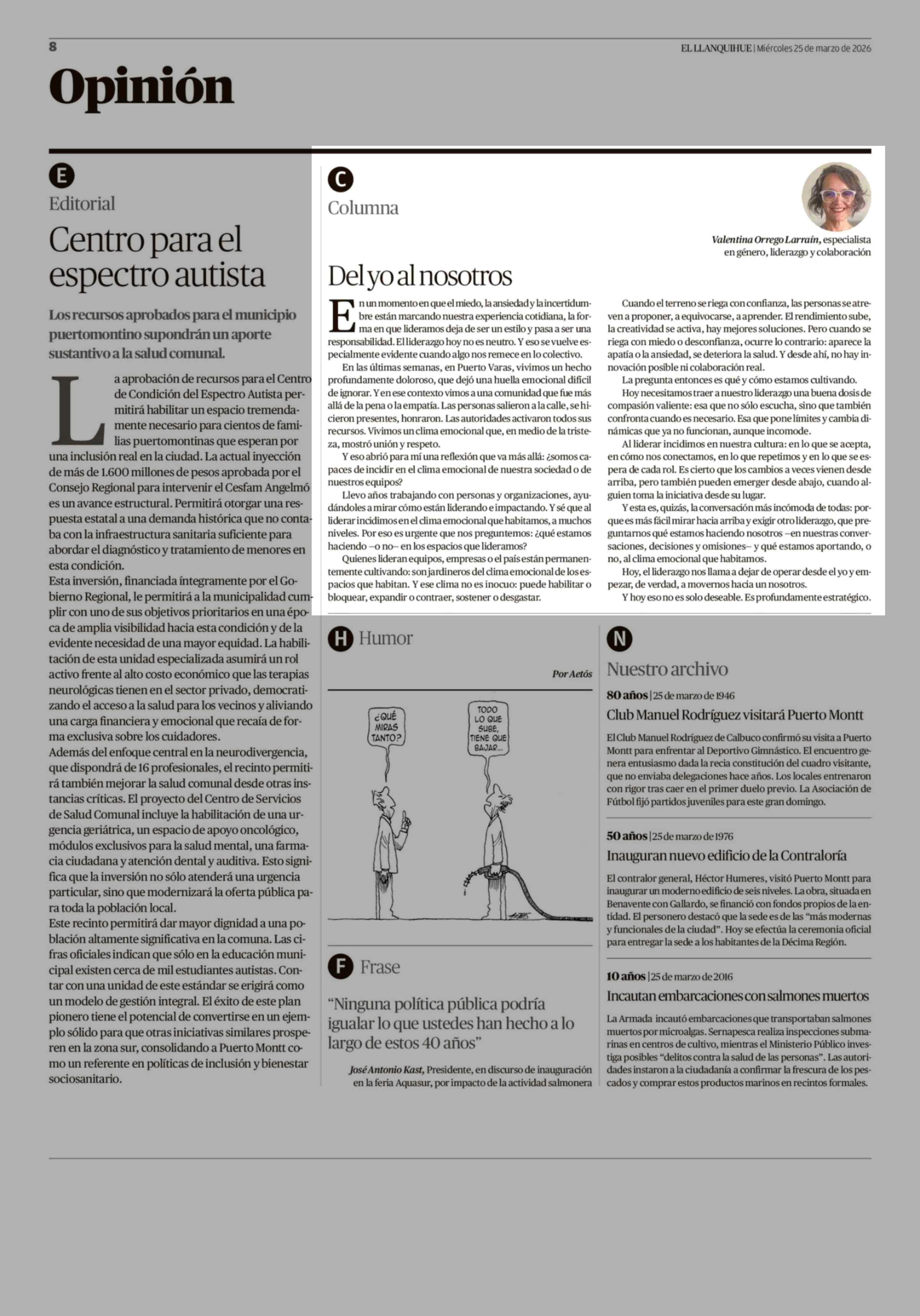 Columnas de Opinión: Del yo al nosotros 25-03-2026 El Llanquihue |