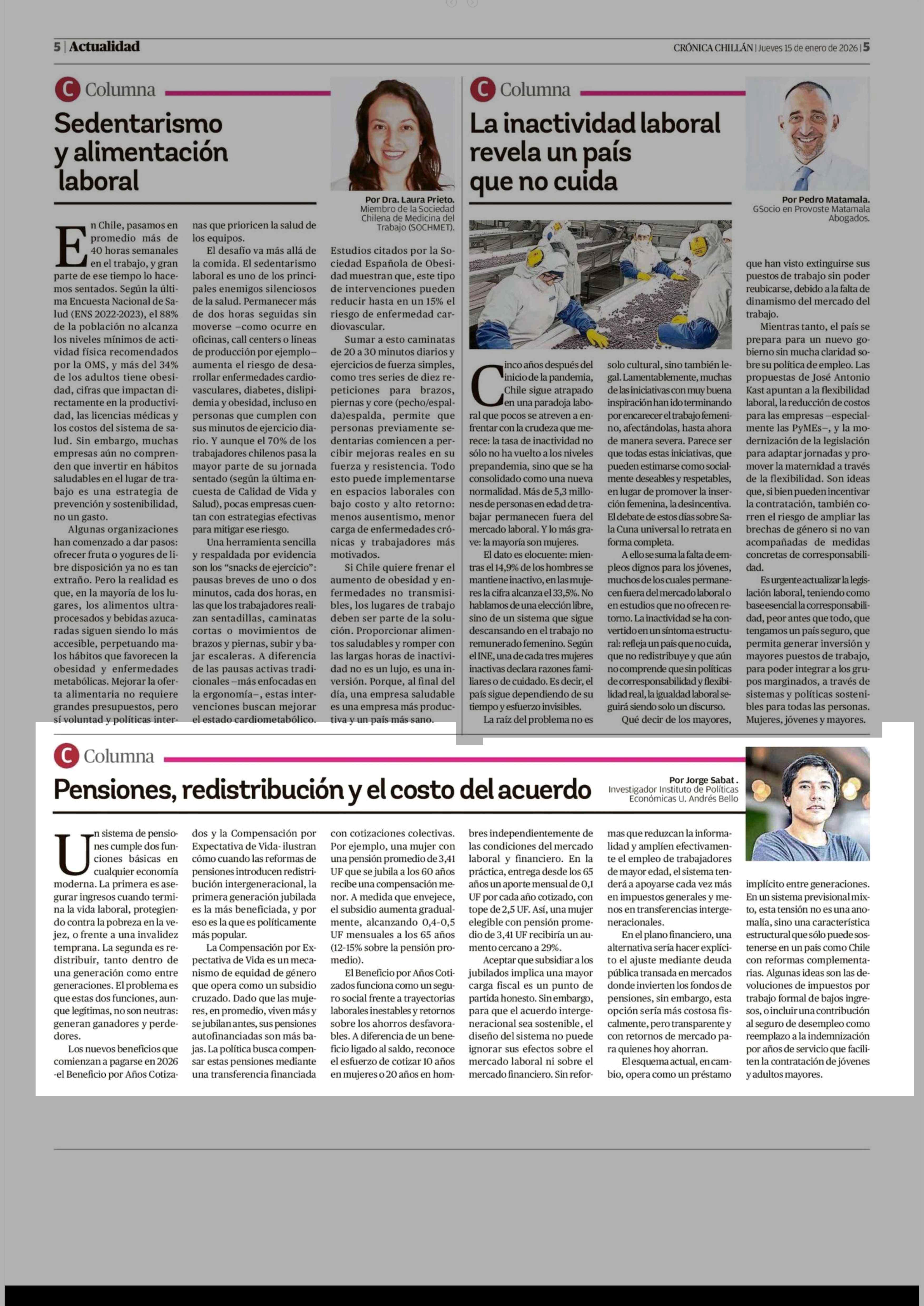 COLUMNAS DE OPINIÓN: Pensiones, redistribución y el costo del acuerdo 15-01-2026 Crónica de Chillán |