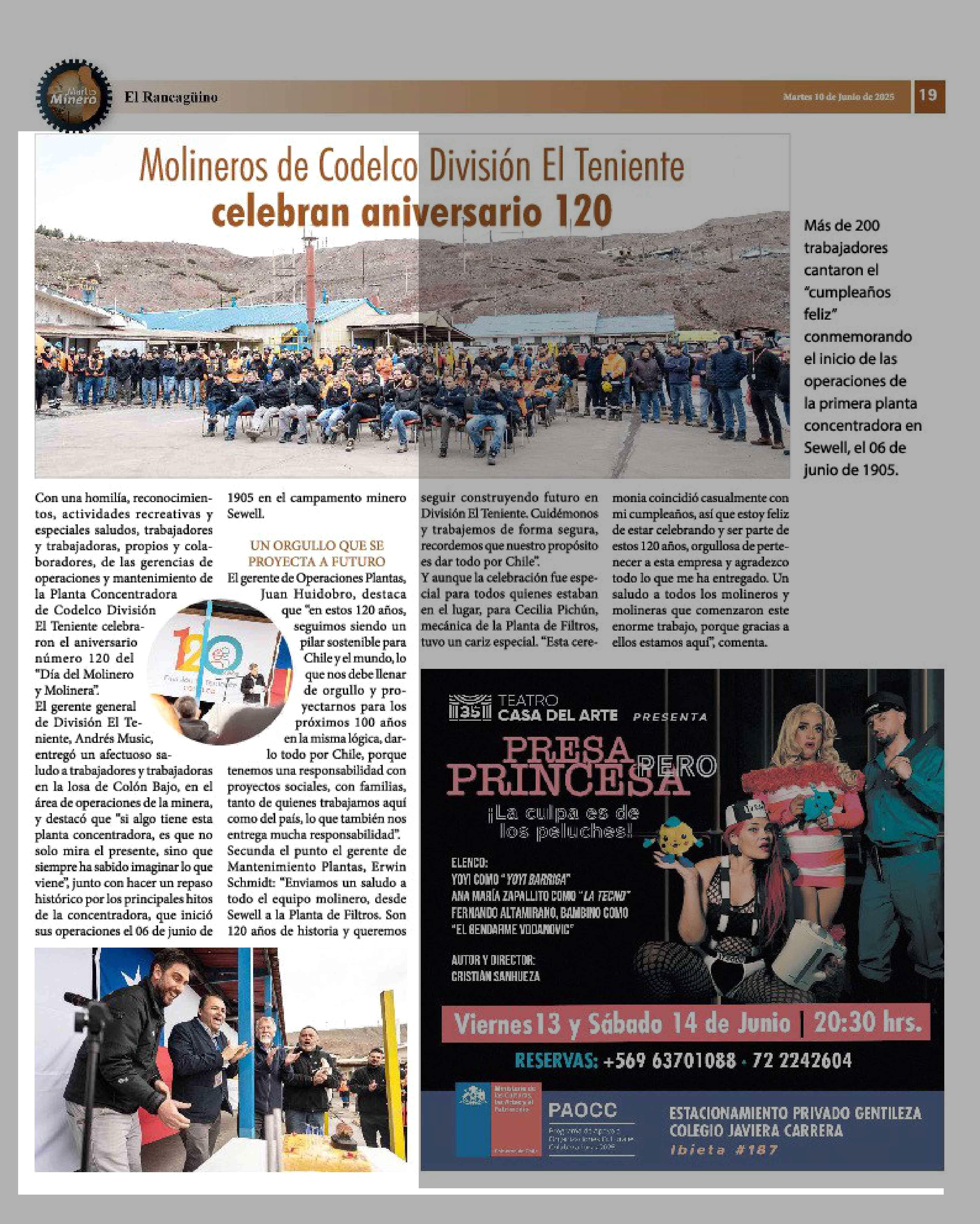 Molineros de Codelco División El Teniente celebran aniversario 120 10-06-2025 El Rancagüino |