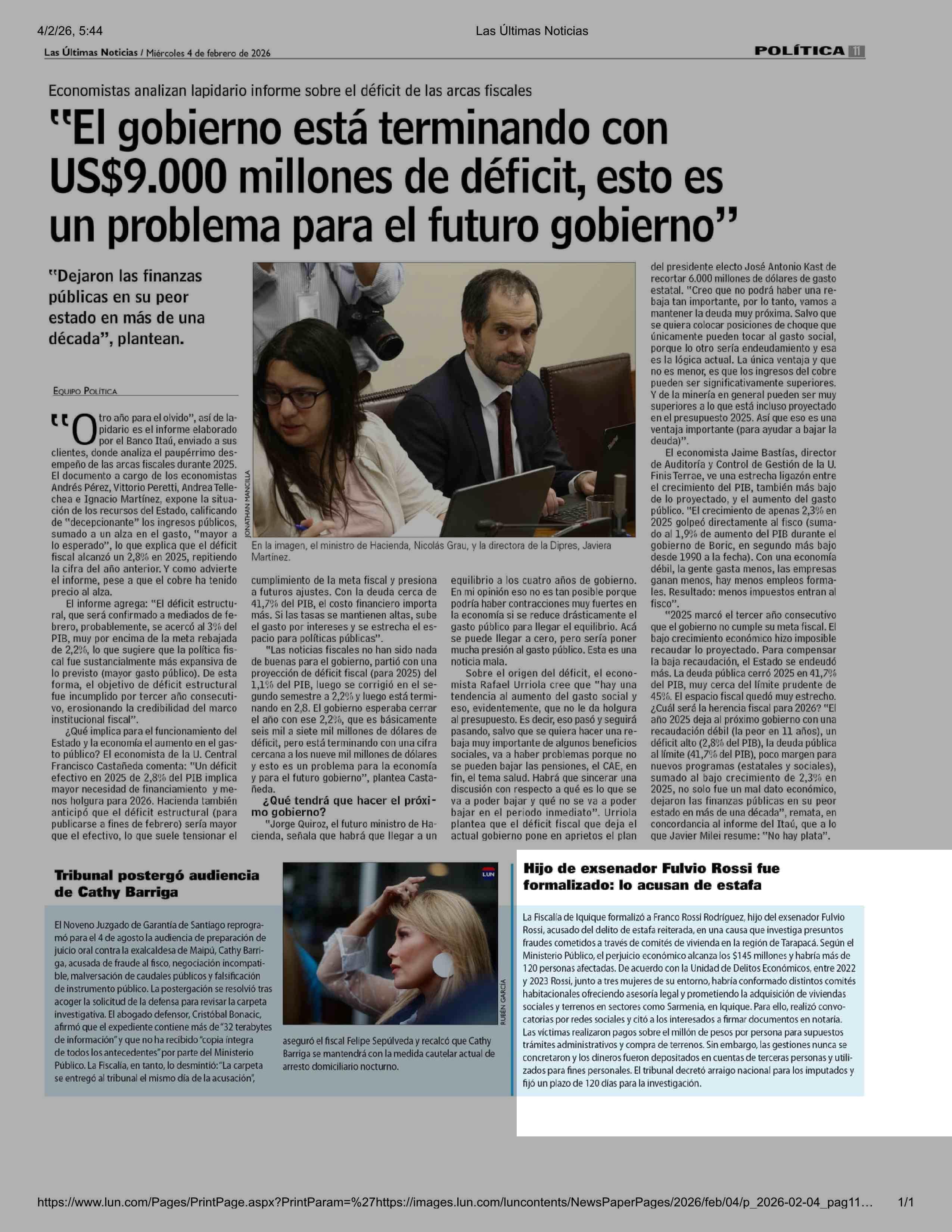 Hijo de exsenador Fulvio Rossi fue formalizado: lo acusan de estafa 04-02-2026 Las Últimas Noticias |
