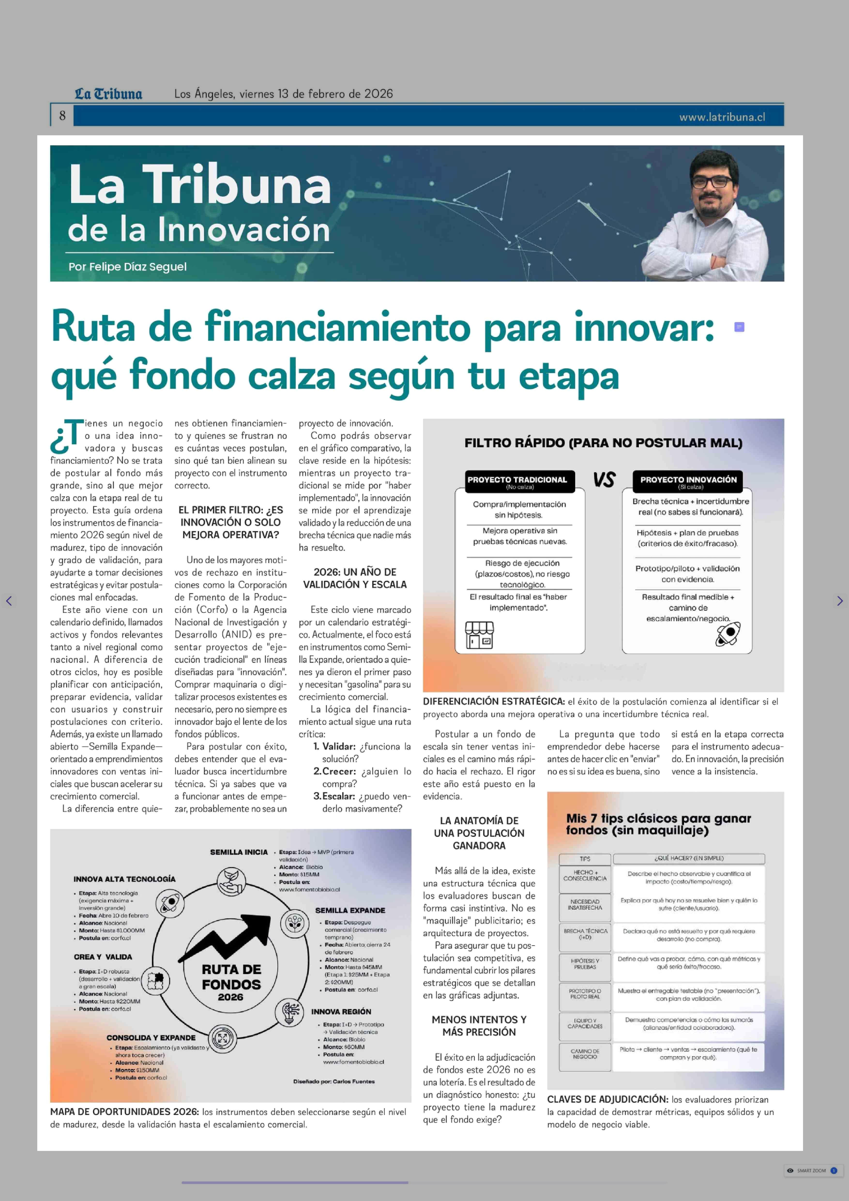 Ruta de financiamiento para innovar: qué fondo calza según tu etapa 13-02-2026 La Tribuna |
