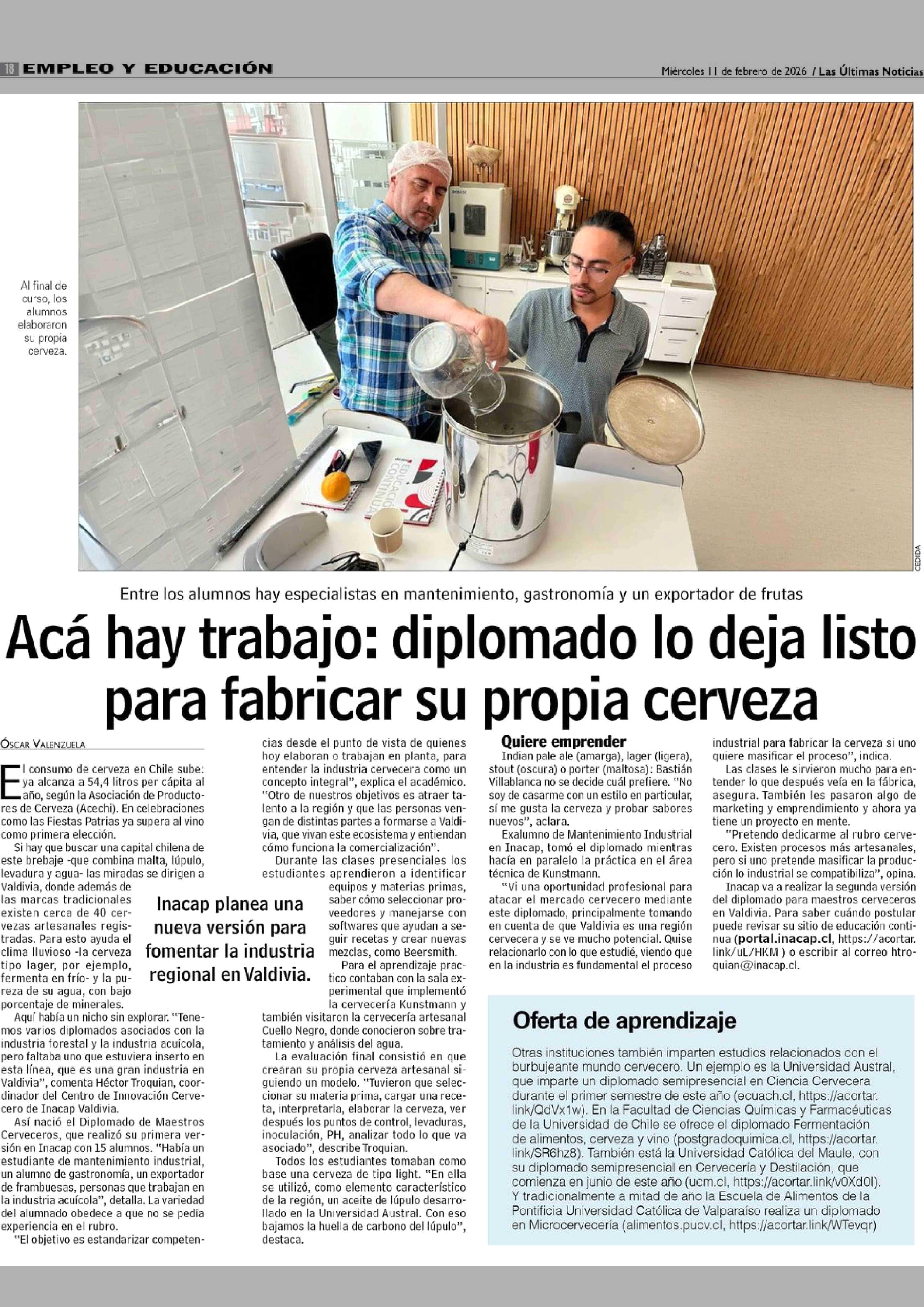 Título: Acá hay trabajo: diplomado lo deja listo para fabricar su propia cerveza
