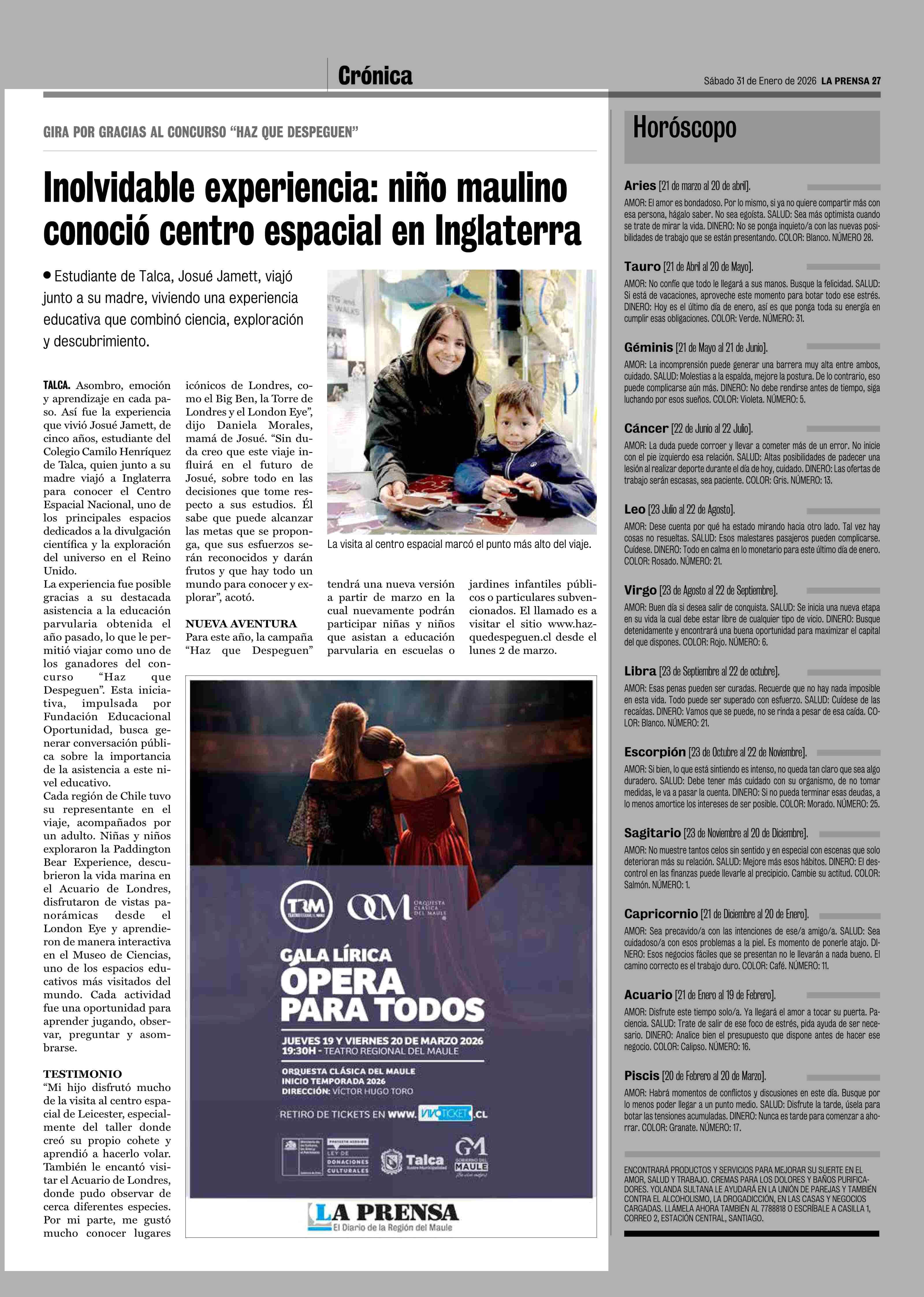 Fecha: 31-01-2026 Sector: Noticia general Región: Región del Maule