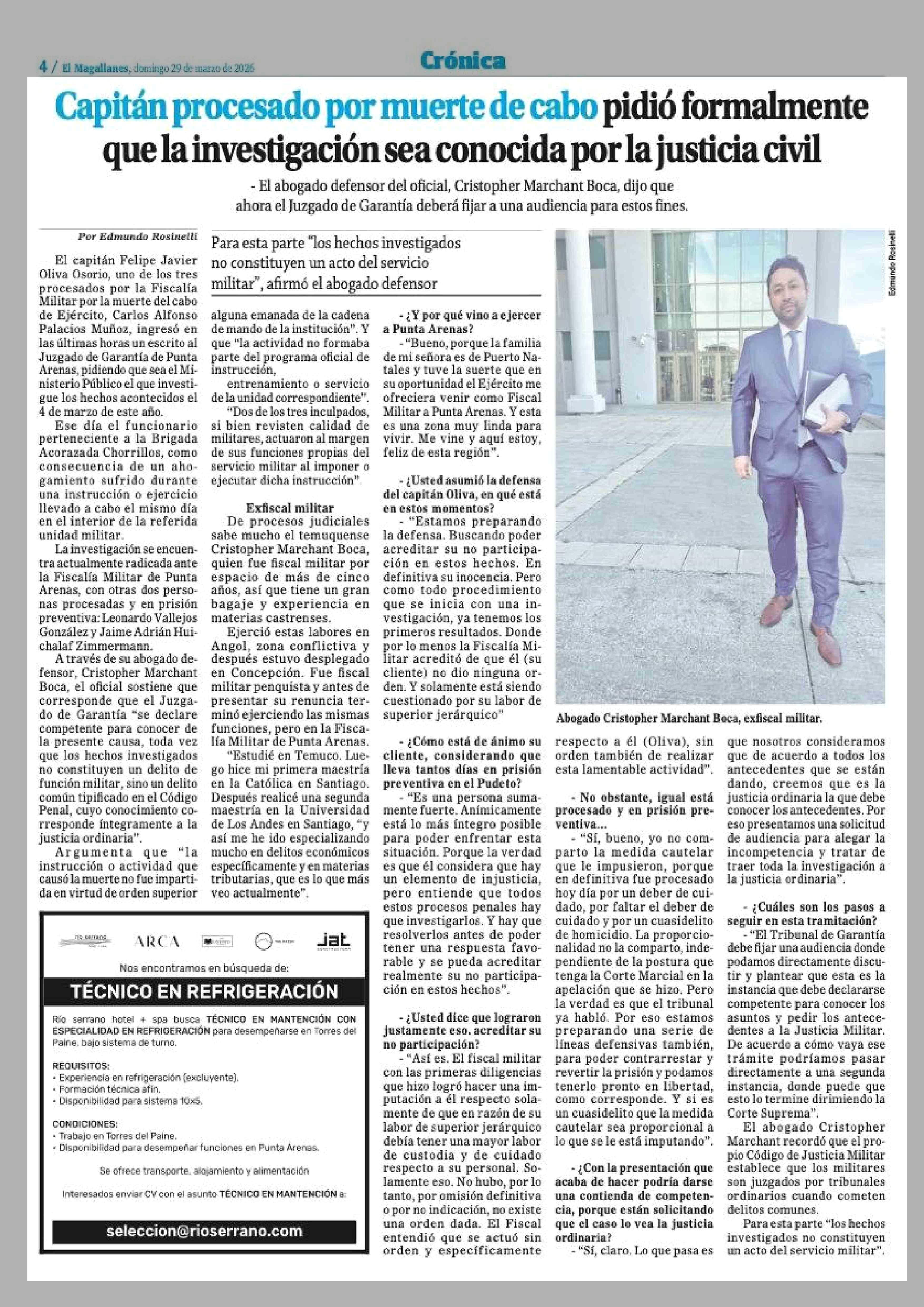 Capitán procesado por muerte de cabo pidió formalmente que la investigación sea conocida por la justicia civil 29-03-2026 El Magallanes |
