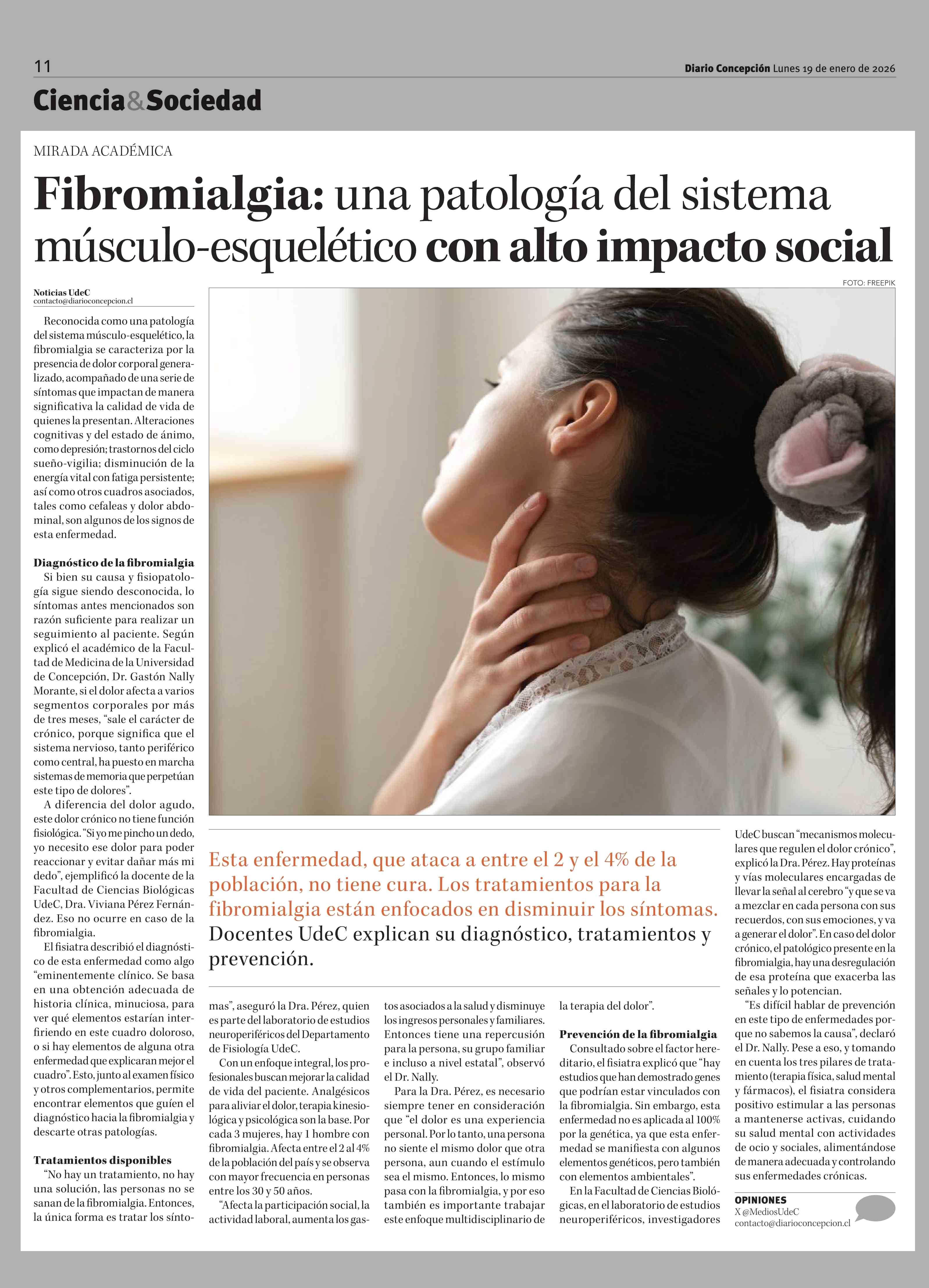 Fibromialgia: una patología del sistema músculo-esquelético con alto impacto social 19-01-2026 Diario Concepción |