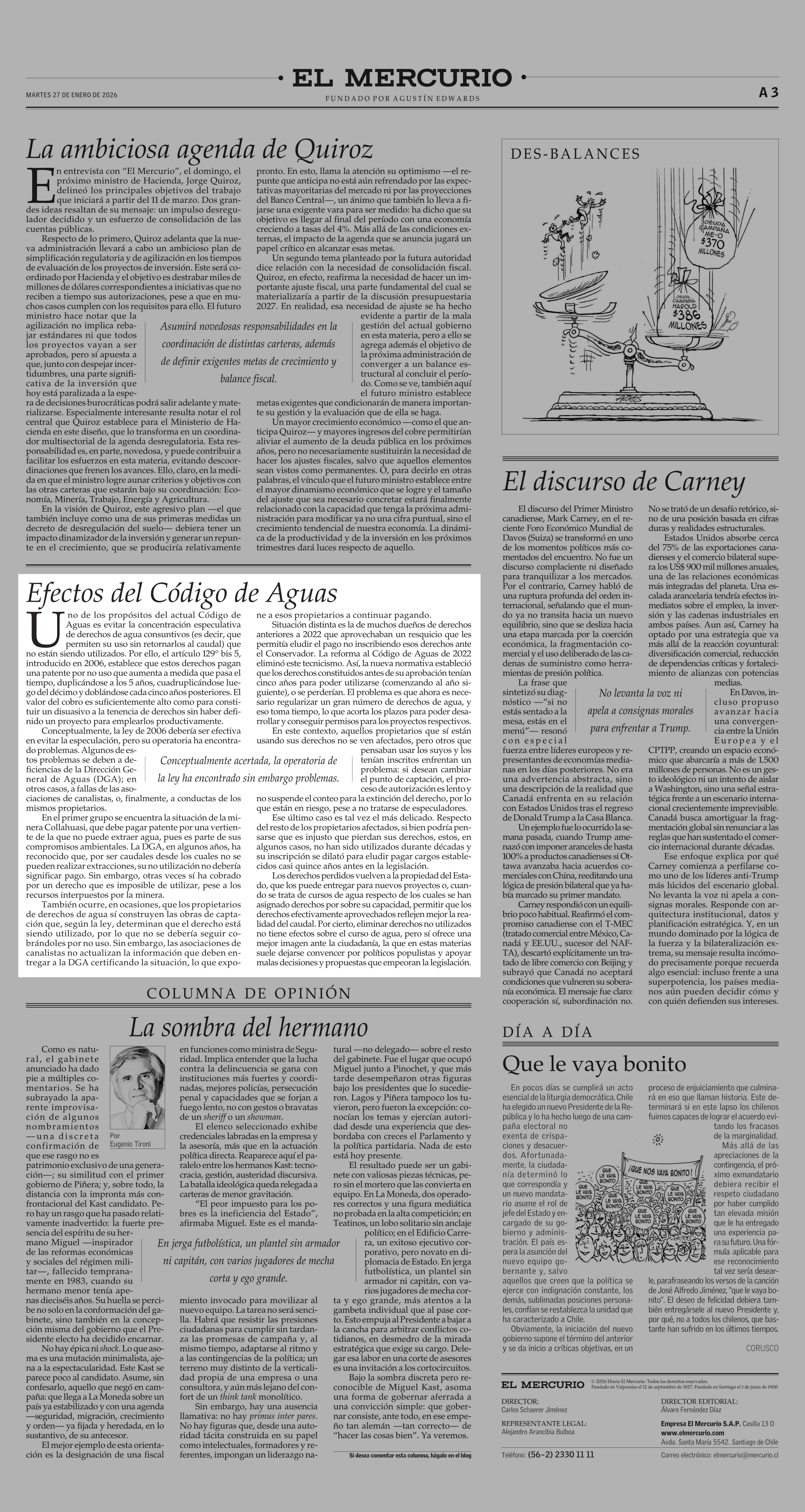 Editorial: Efectos del Código de Aguas 27-01-2026 El Mercurio |