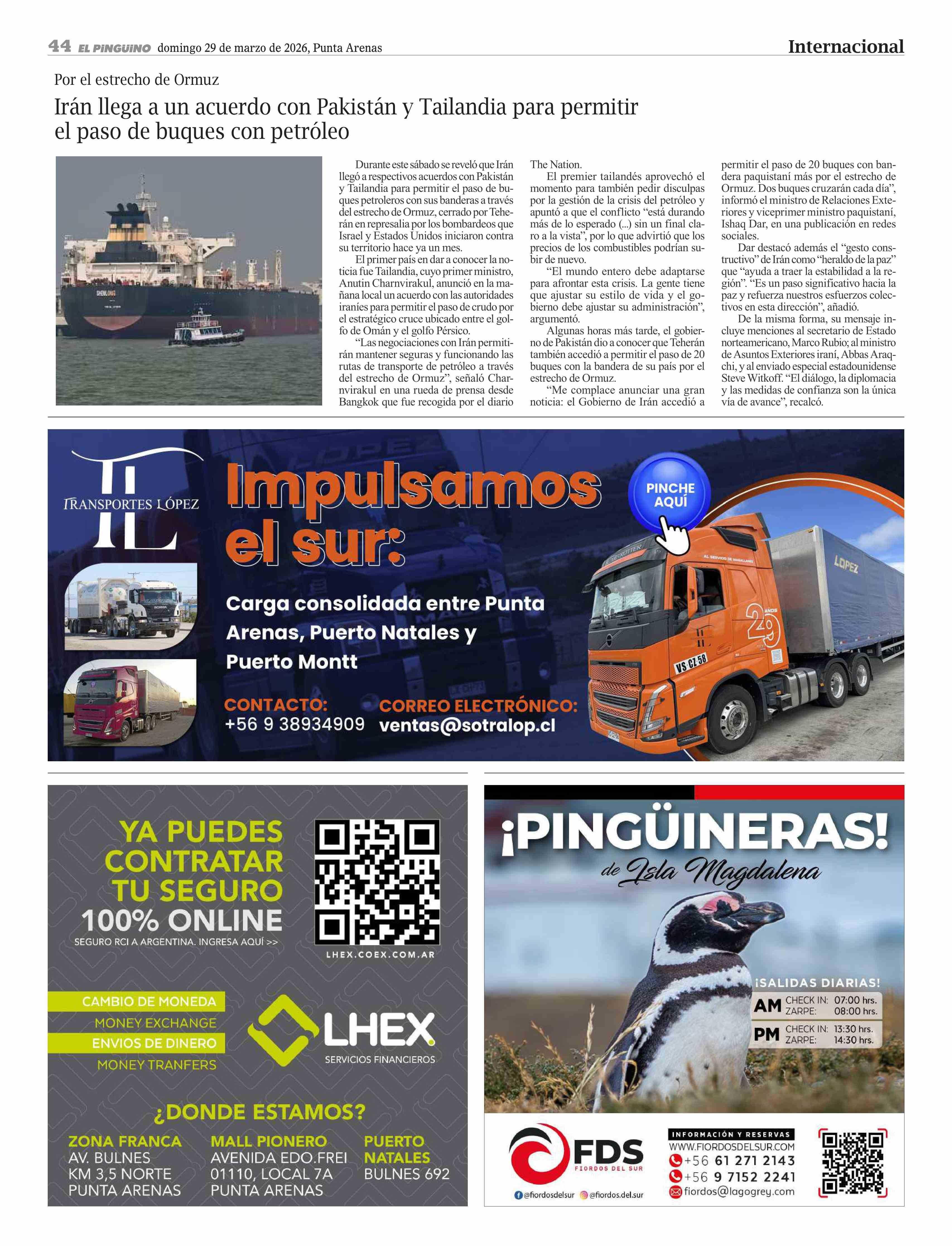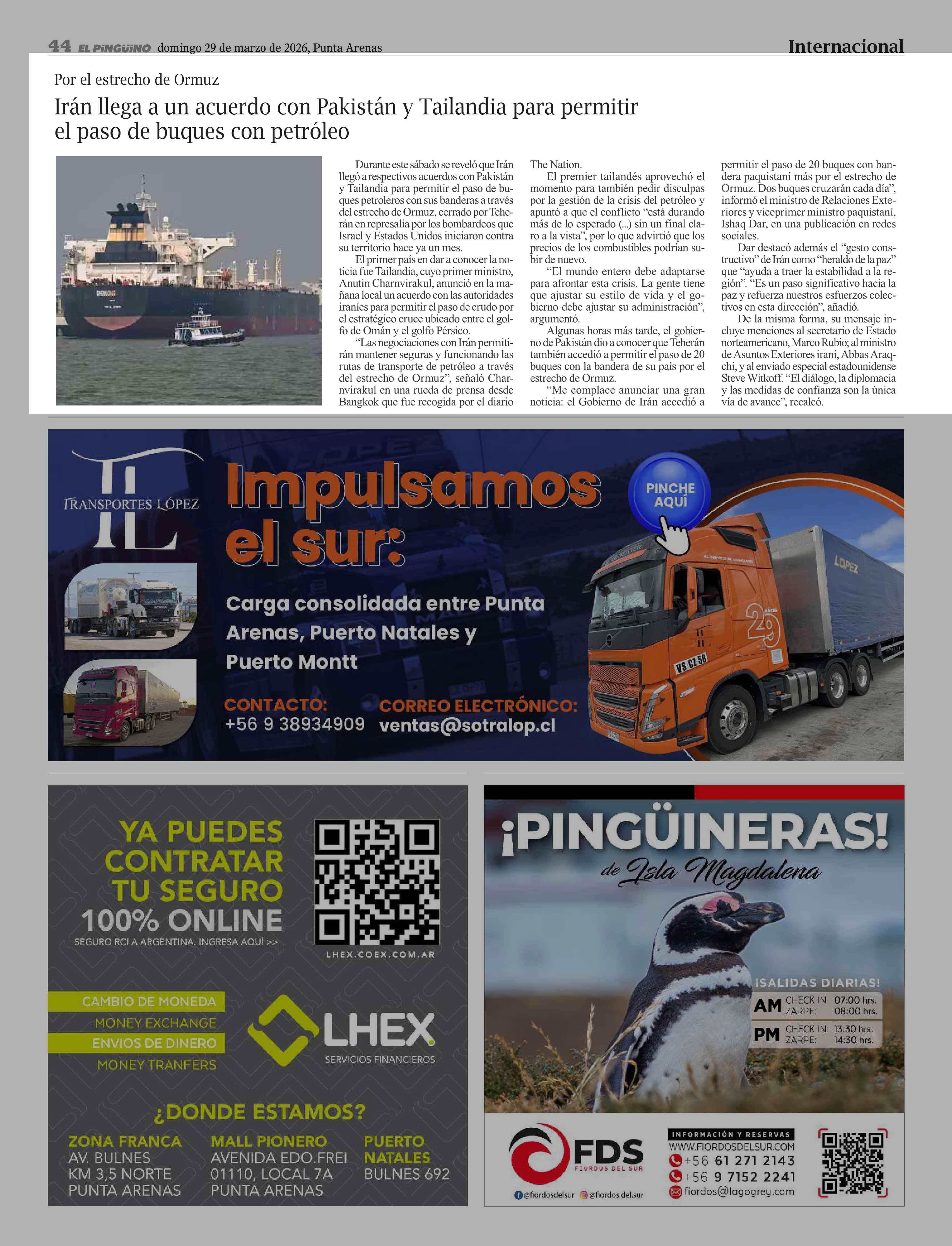 Fecha: 29-03-2026 Sector: Noticia general Región: Región de Magallanes y de la Antártica Chilena