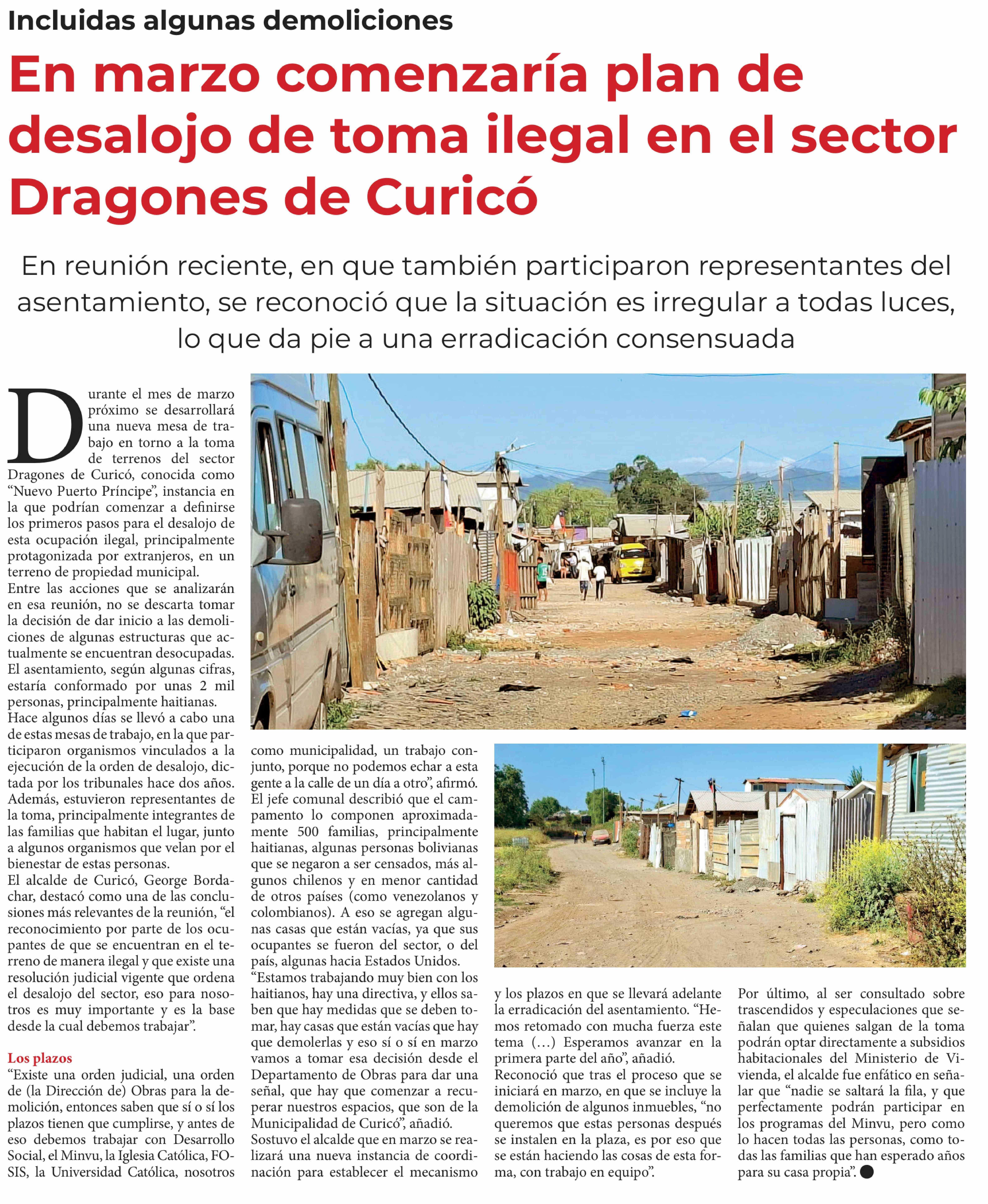 En marzo comenzaría plan de desalojo de toma ilegal en el sector Dragones de Curicó 01-02-2026 Diario Talca |