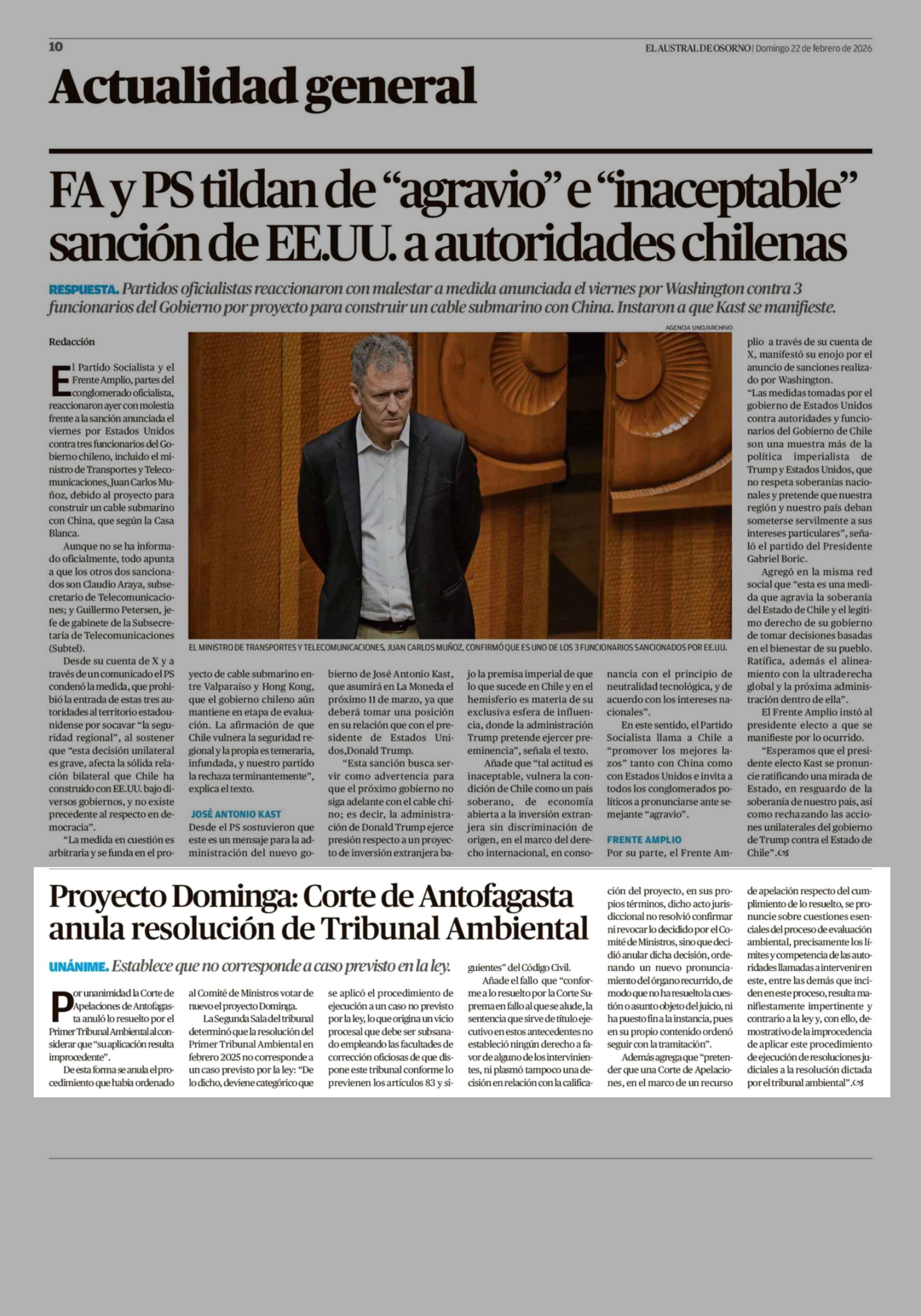 Proyecto Dominga: Corte de Antofagasta anula resolución de Tribunal Ambiental 22-02-2026 El Austral de Osorno |