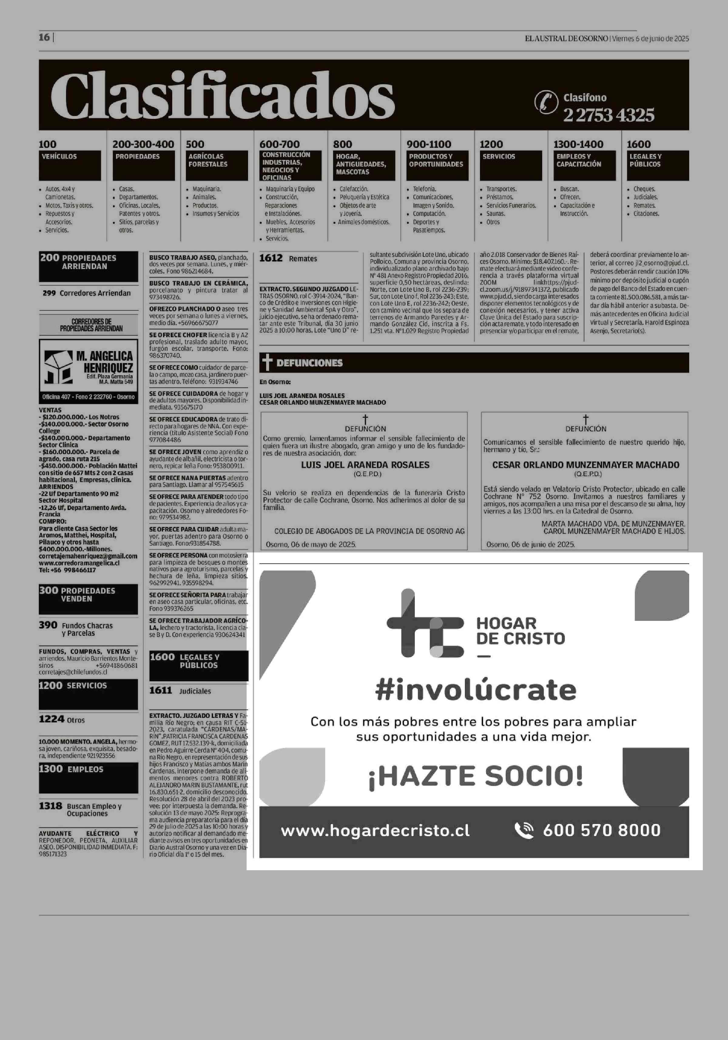 Aviso Ayuda Social: HOGAR DE CRISTO 06-06-2025 El Austral de Osorno |