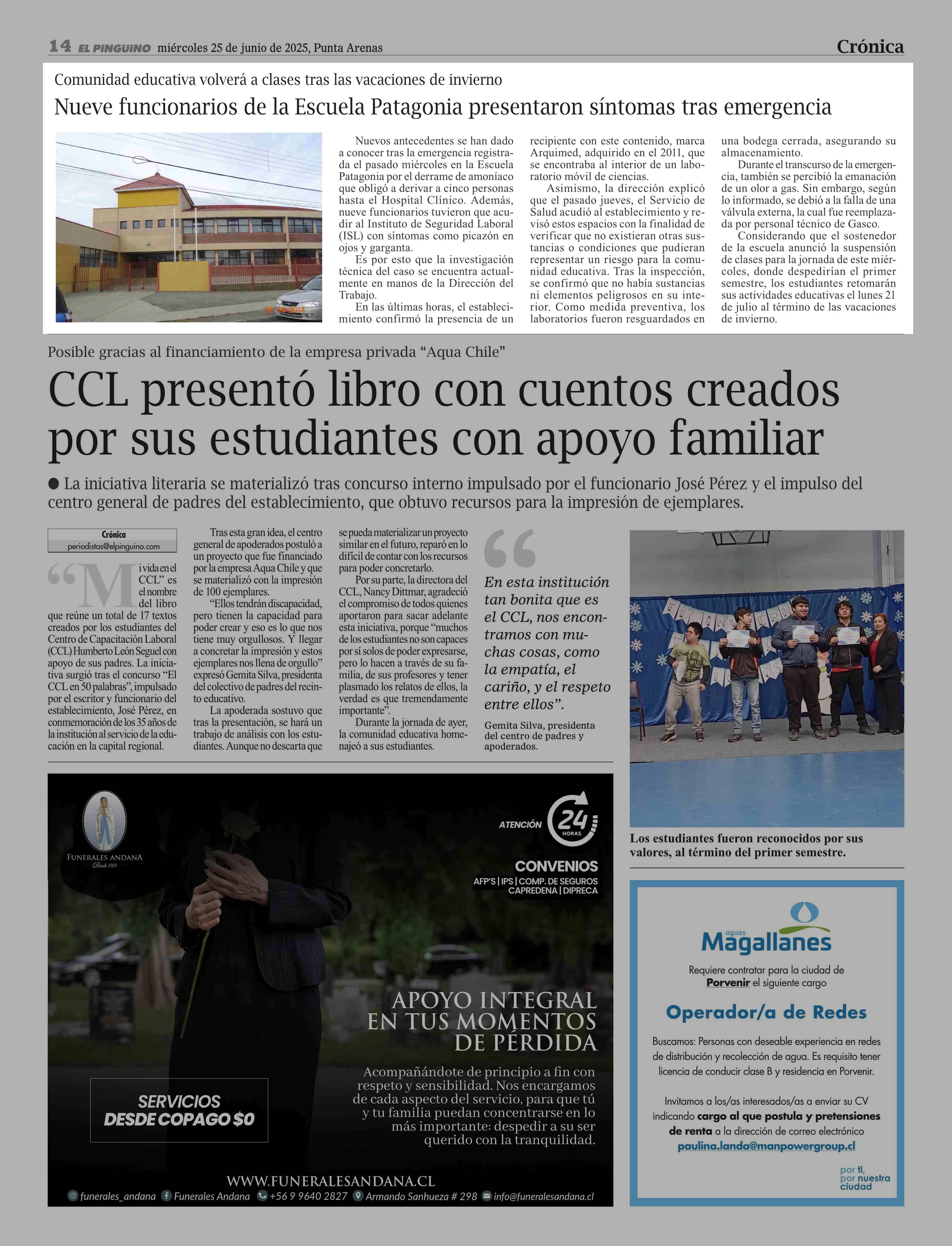 Nueve funcionarios de la Escuela Patagonia presentaron síntomas tras emergencia 25-06-2025 El Pingüino |