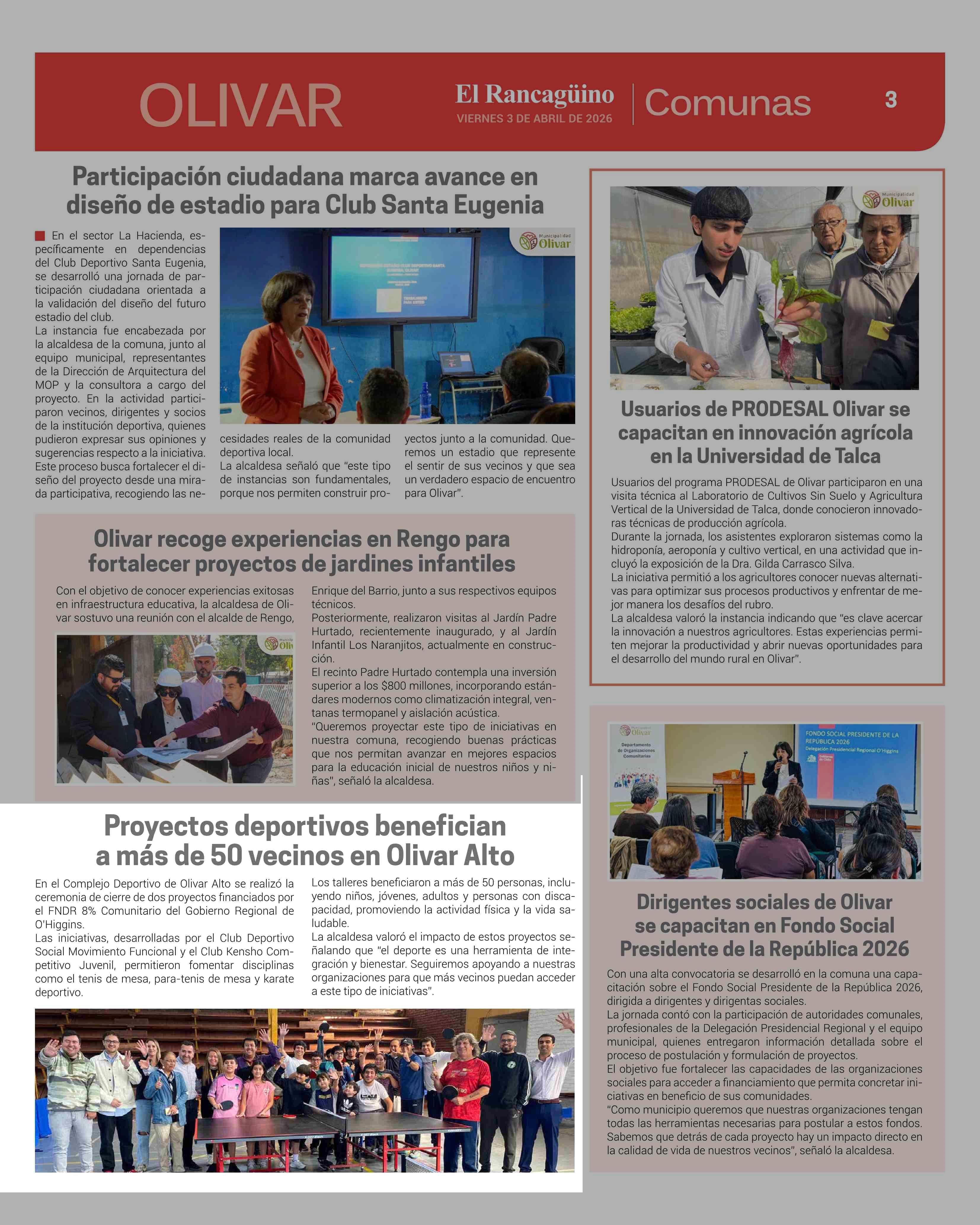 | Fecha: | 03-04-2026 | Sector: | Noticia general | Región: | Región del Libertador General Bernardo O'Higgins |