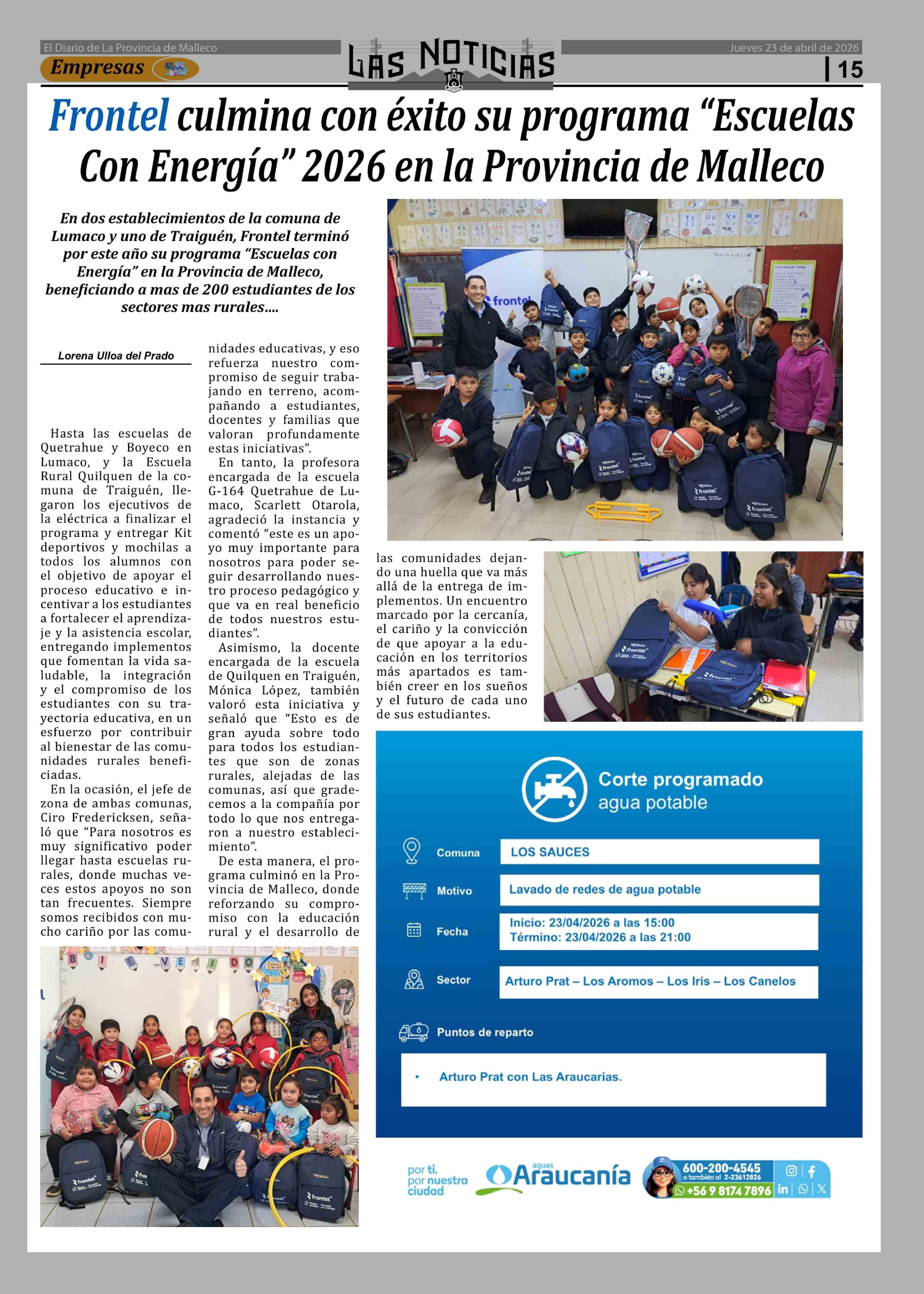 Título: Frontel culmina con éxito su programa "Escuelas Con Energía" 2026 en la Provincia de Malleco