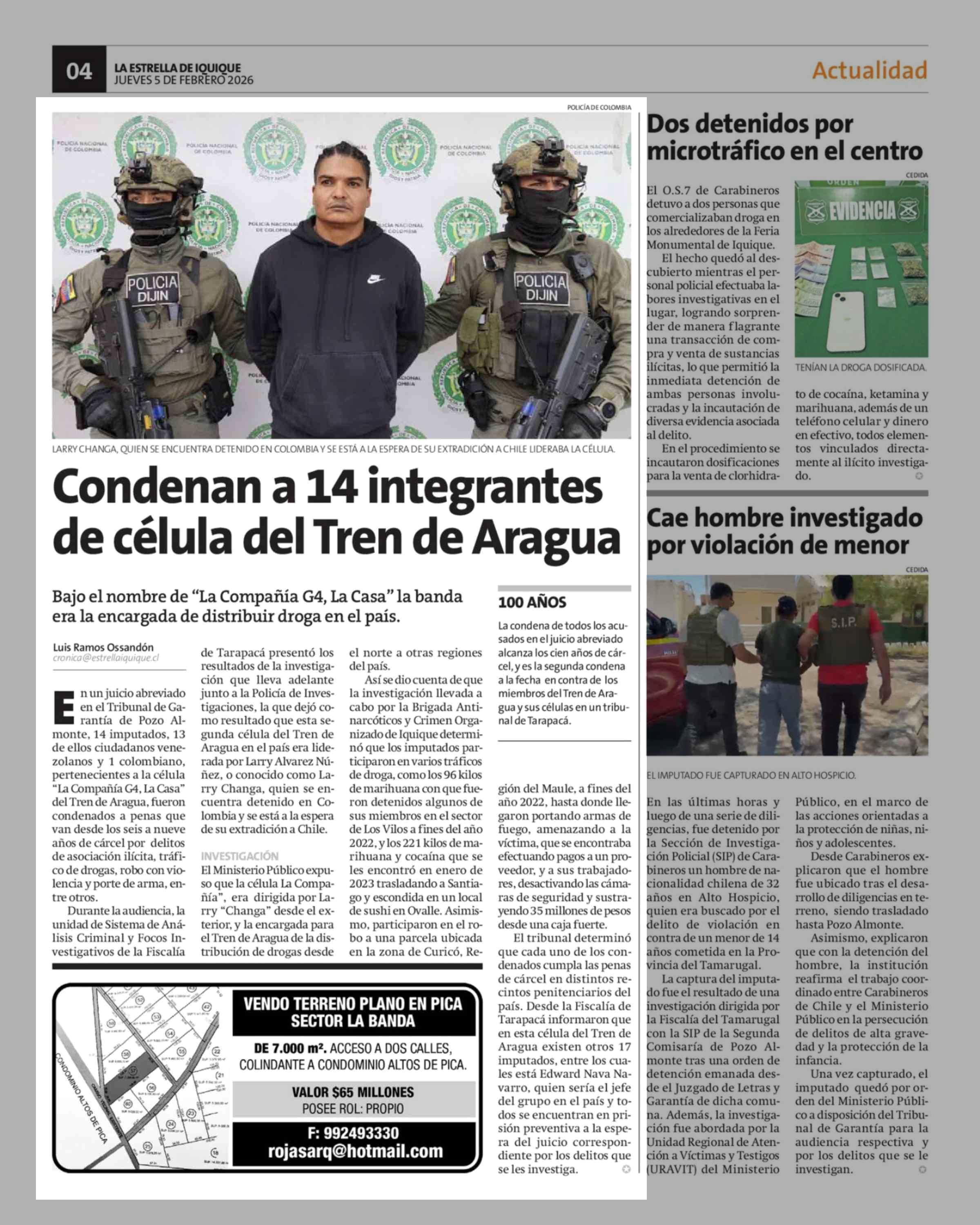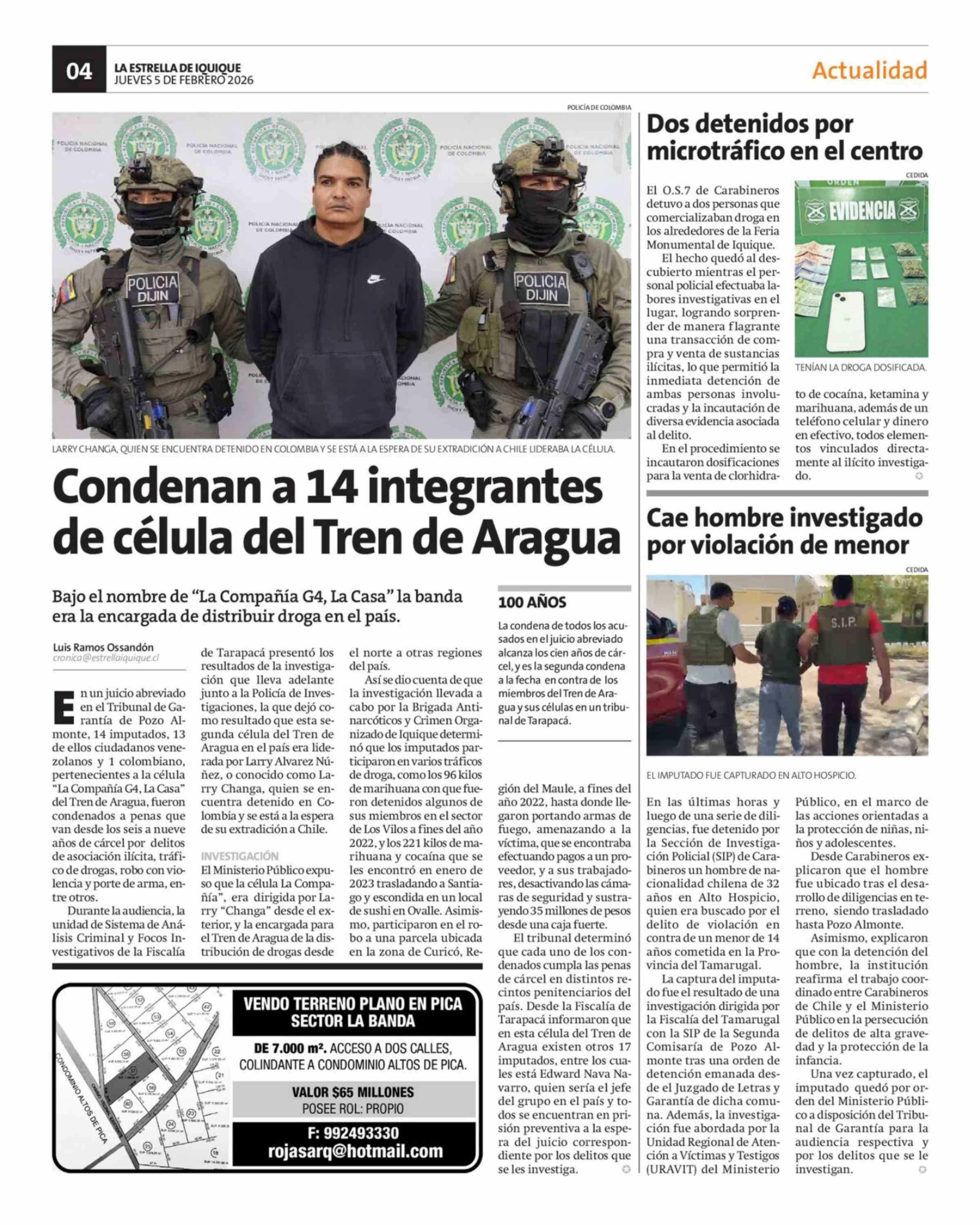 Condenan a 14 integrantes de célula del Tren de Aragua 05-02-2026 La Estrella de Iquique |