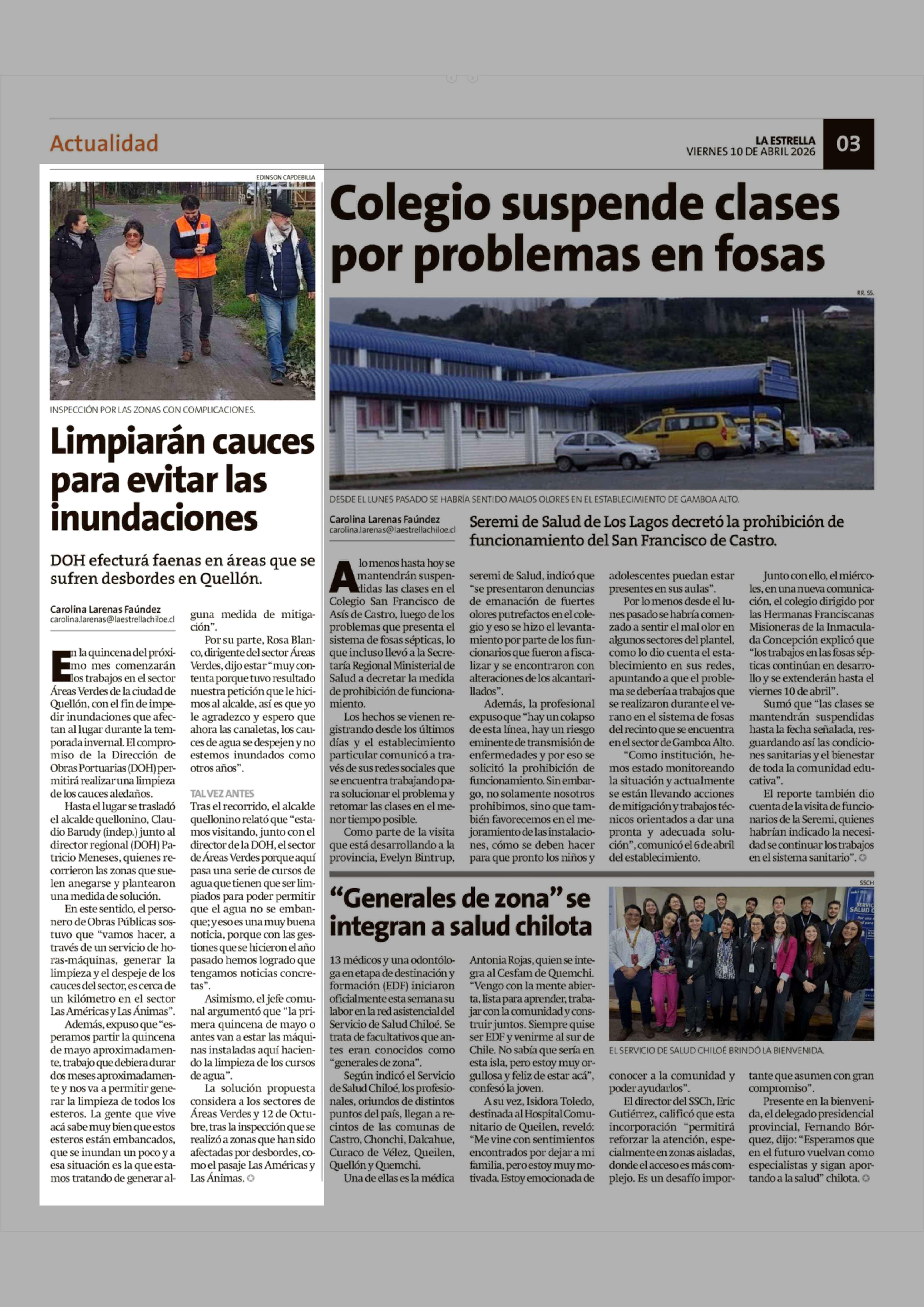 Limpiarán cauces para evitar las inundaciones 10-04-2026 La Estrella de Chiloé |