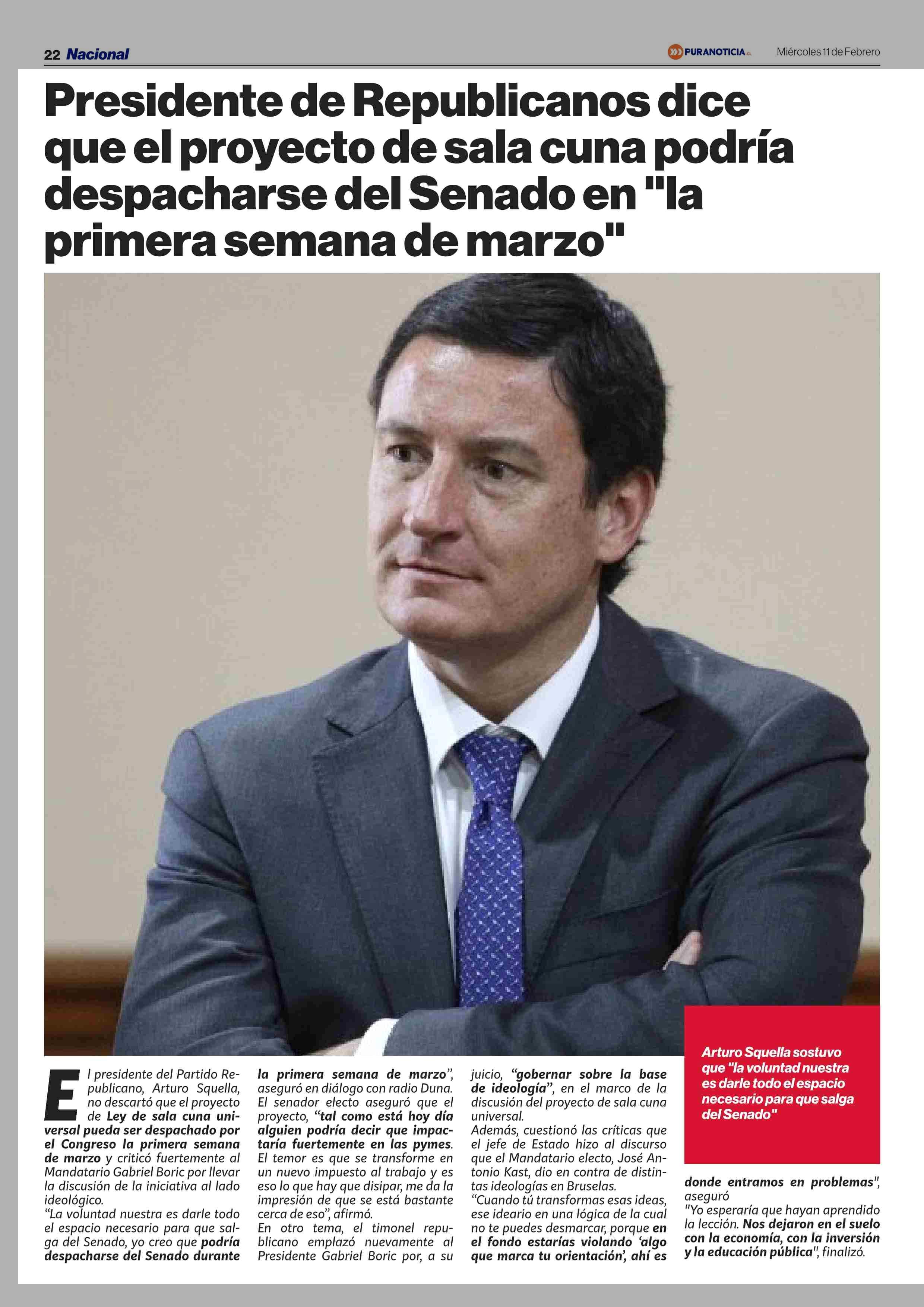 Título: Presidente de Republicanos dice que el proyecto de sala cuna podría despacharse del Senado en "la primera semana de marzo”
