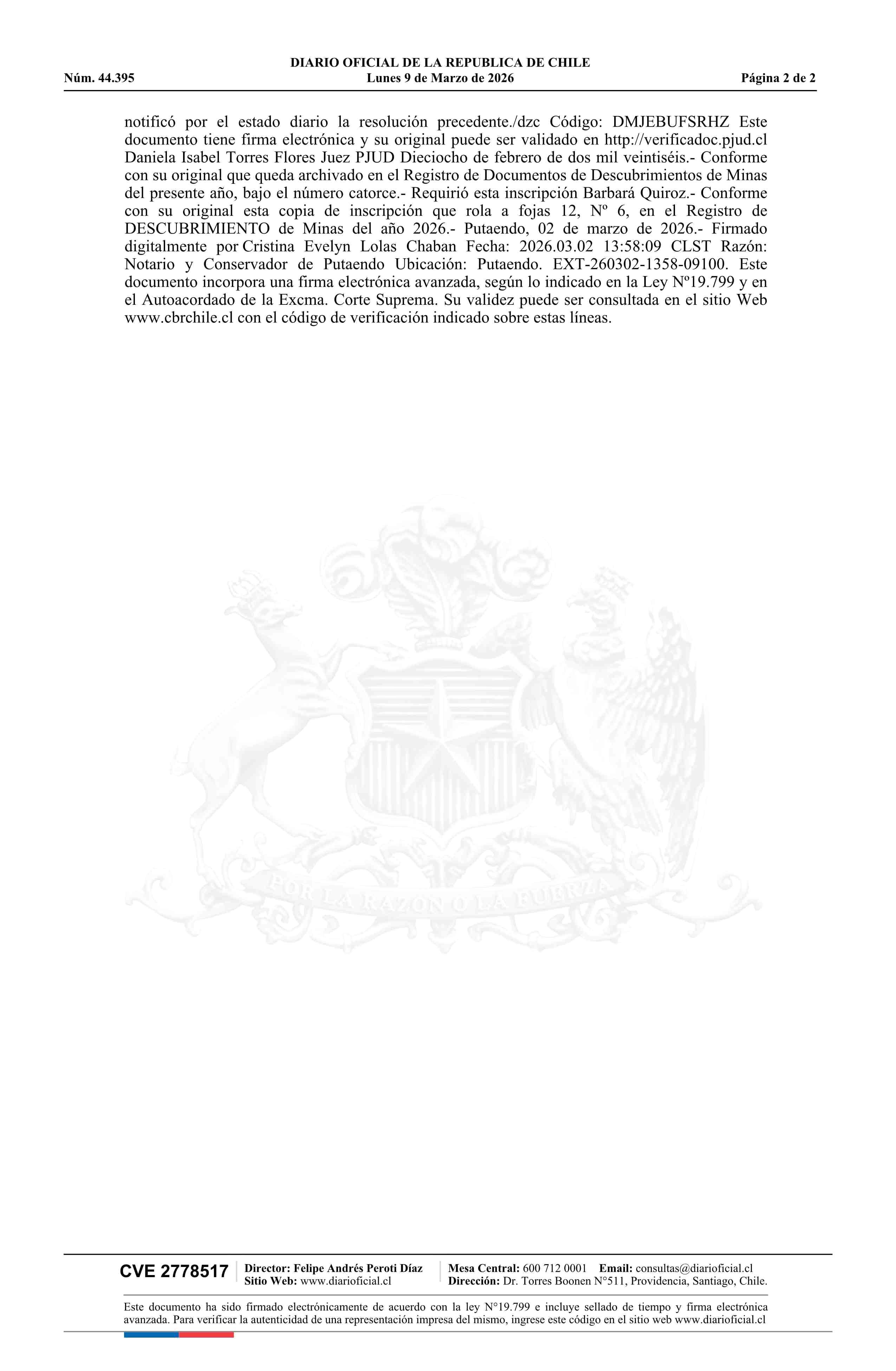 09-03-2026 DIARIO OFICIAL CHILE - BOLETÍN OFICIAL DE MINERÍA