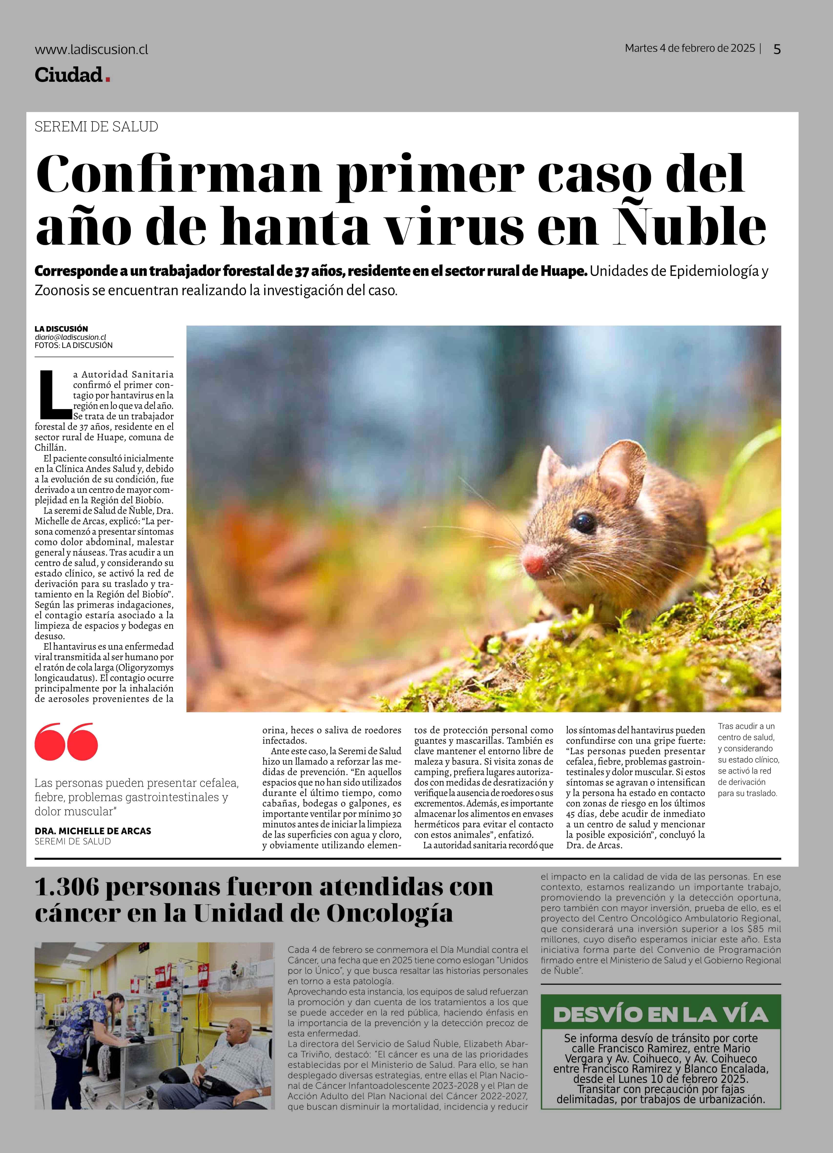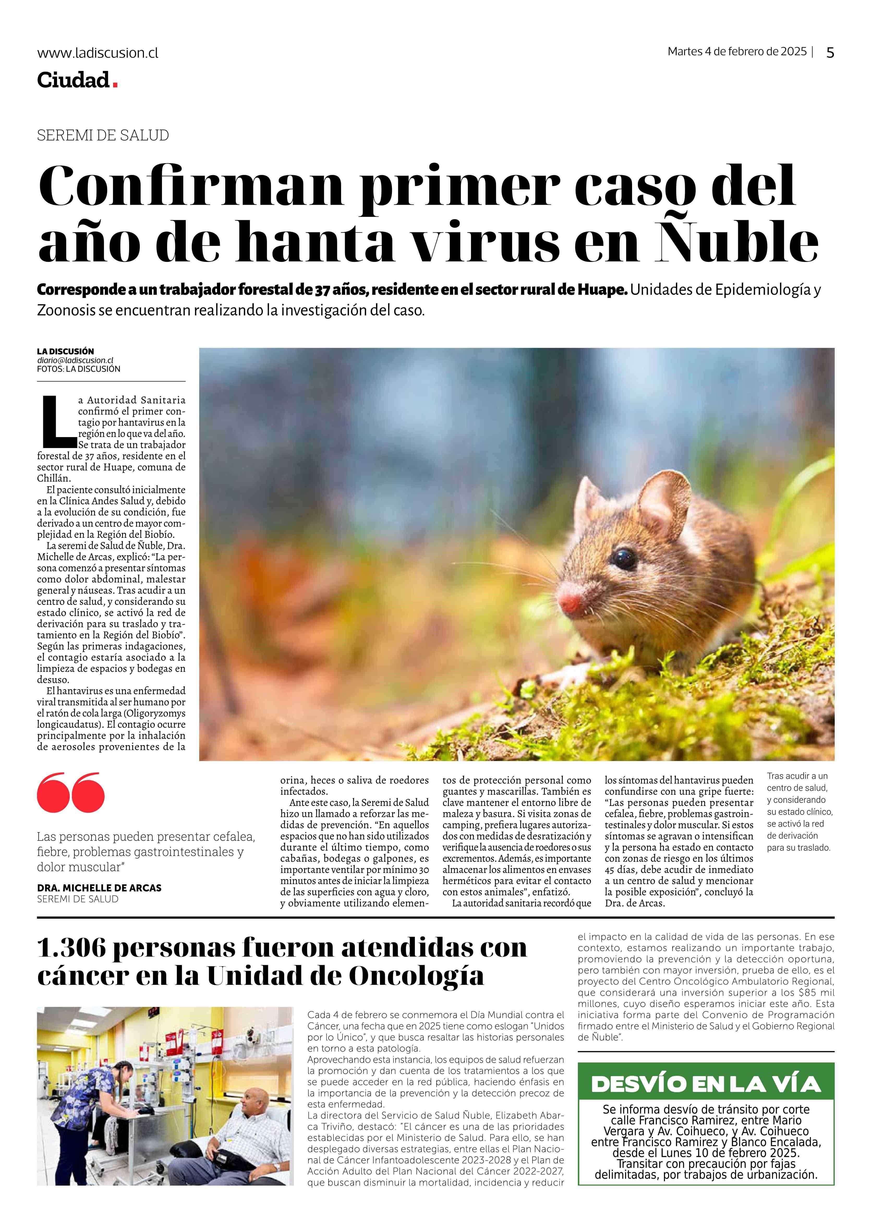 Confirman primer caso del año de hanta virus en Ñuble 04-02-2025 La Discusión |