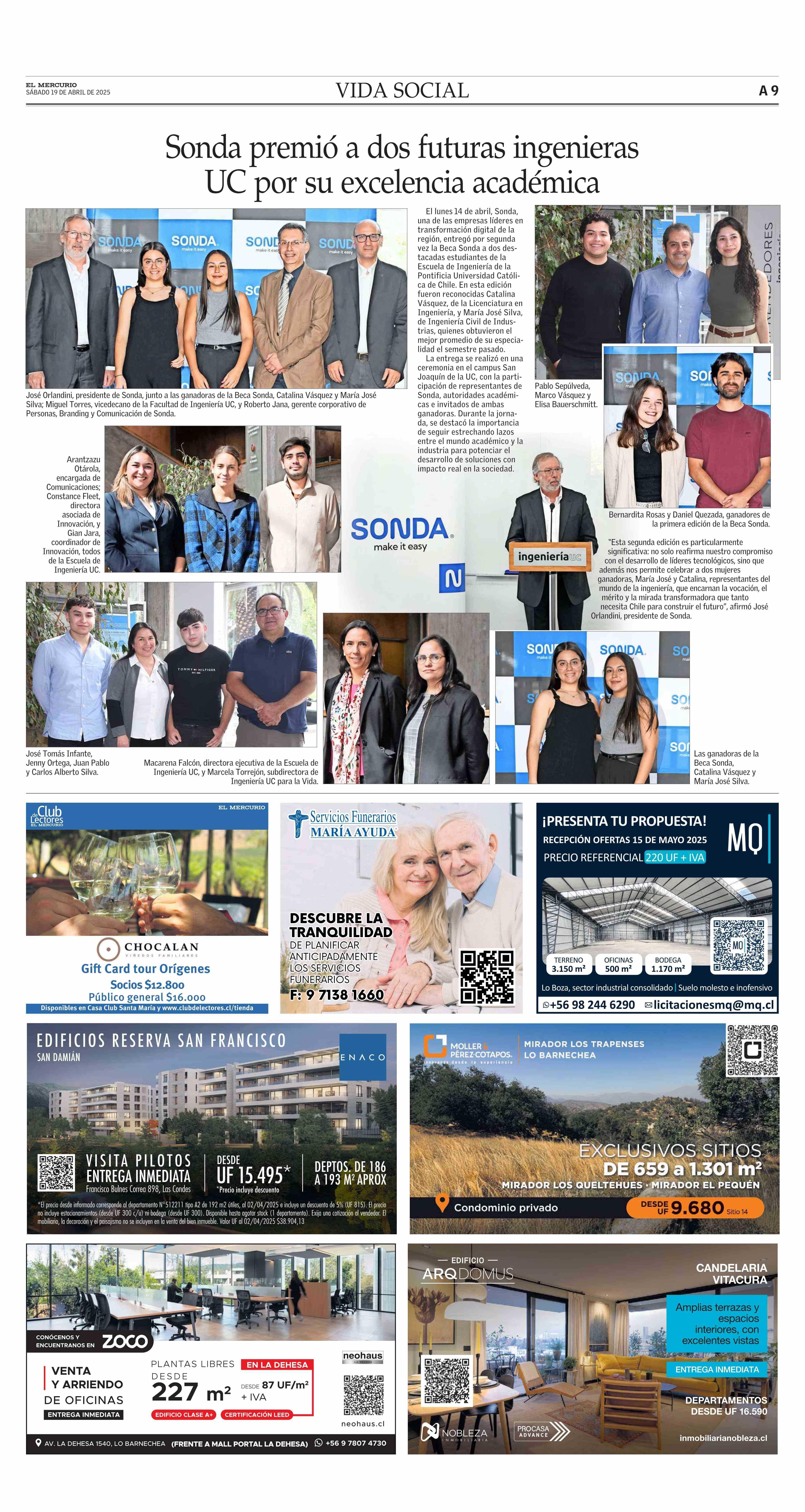 Sonda premió a dos futuras ingenieras UC por su excelencia académica 19-04-2025 El Mercurio |