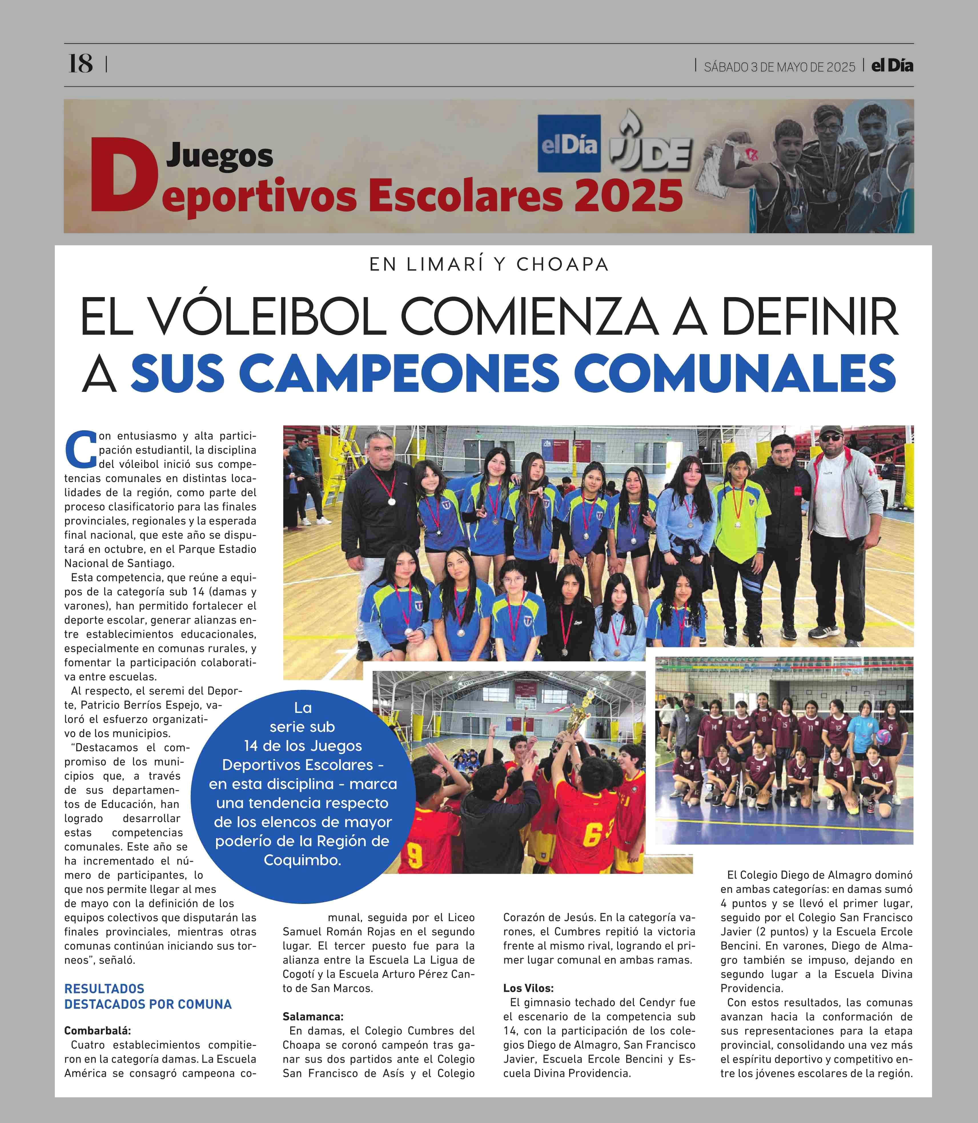 El vólEibol comiEnza a dEfinir a sus campeones comunales 03-05-2025 El Día |