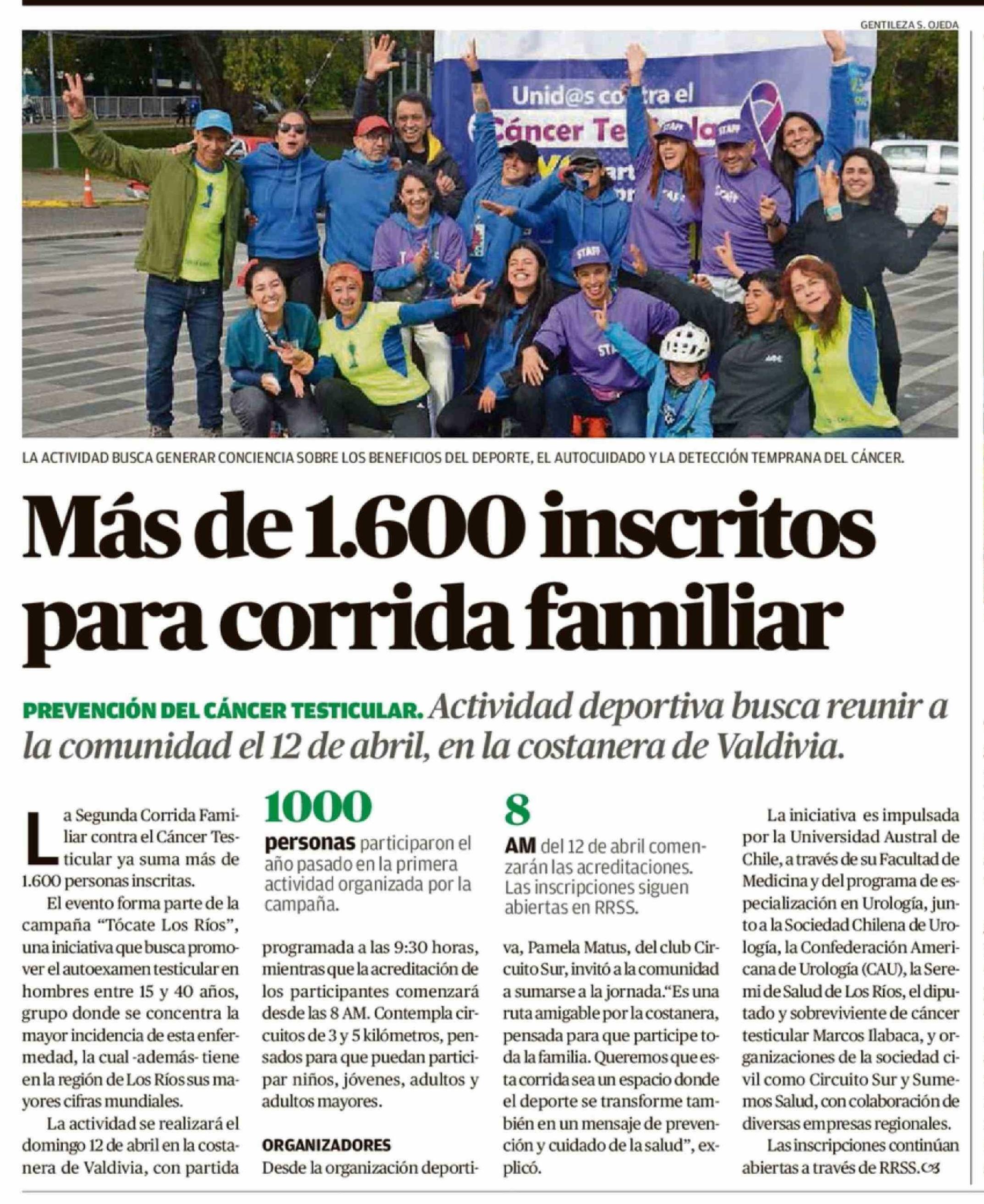 Más de 1.600 inscritos para corrida familiar 18-03-2026 Diario Austral Región de Los Ríos |