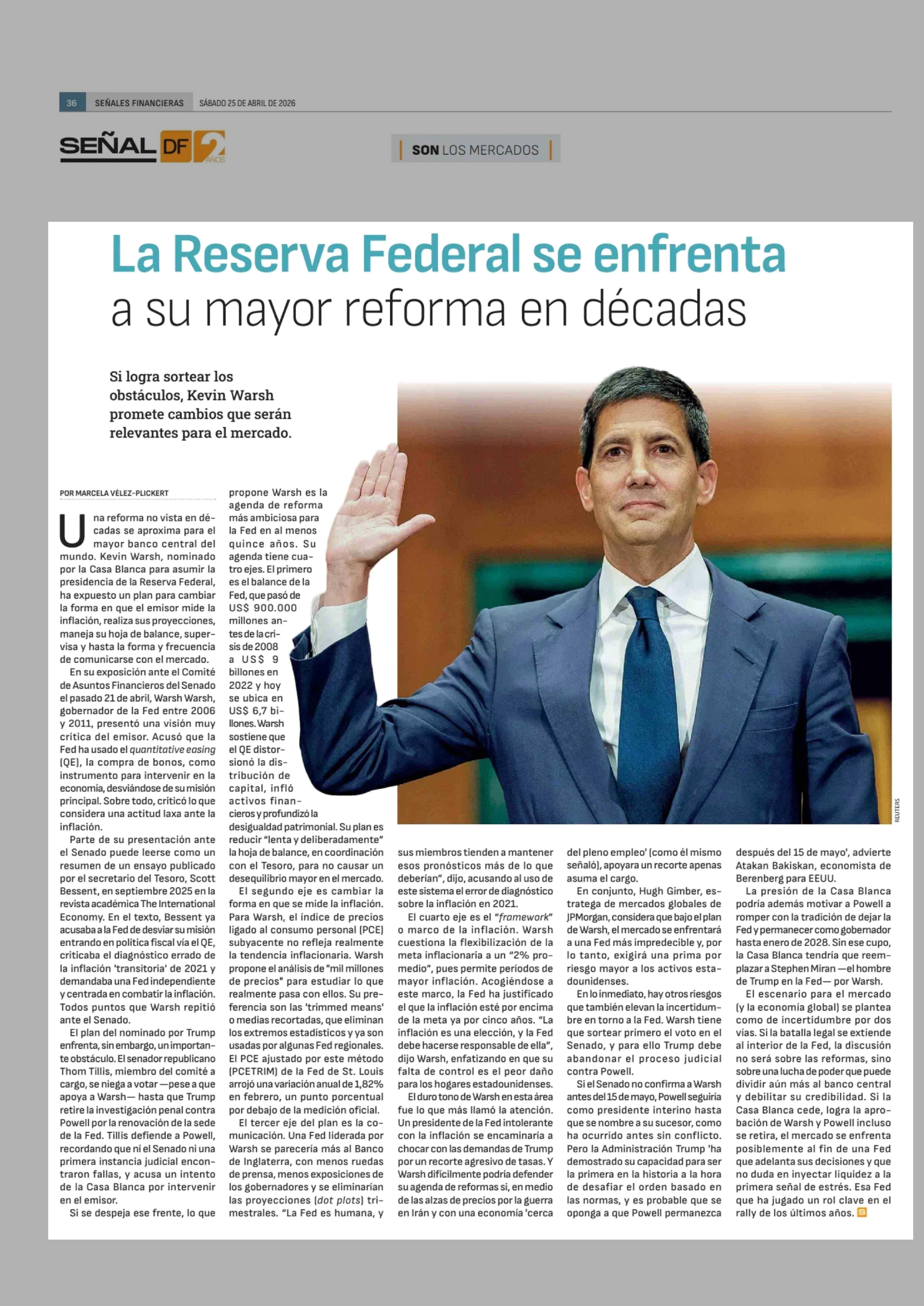 La Reserva Federal se enfrenta a su mayor reforma en décadas 25-04-2026 Diario Financiero |