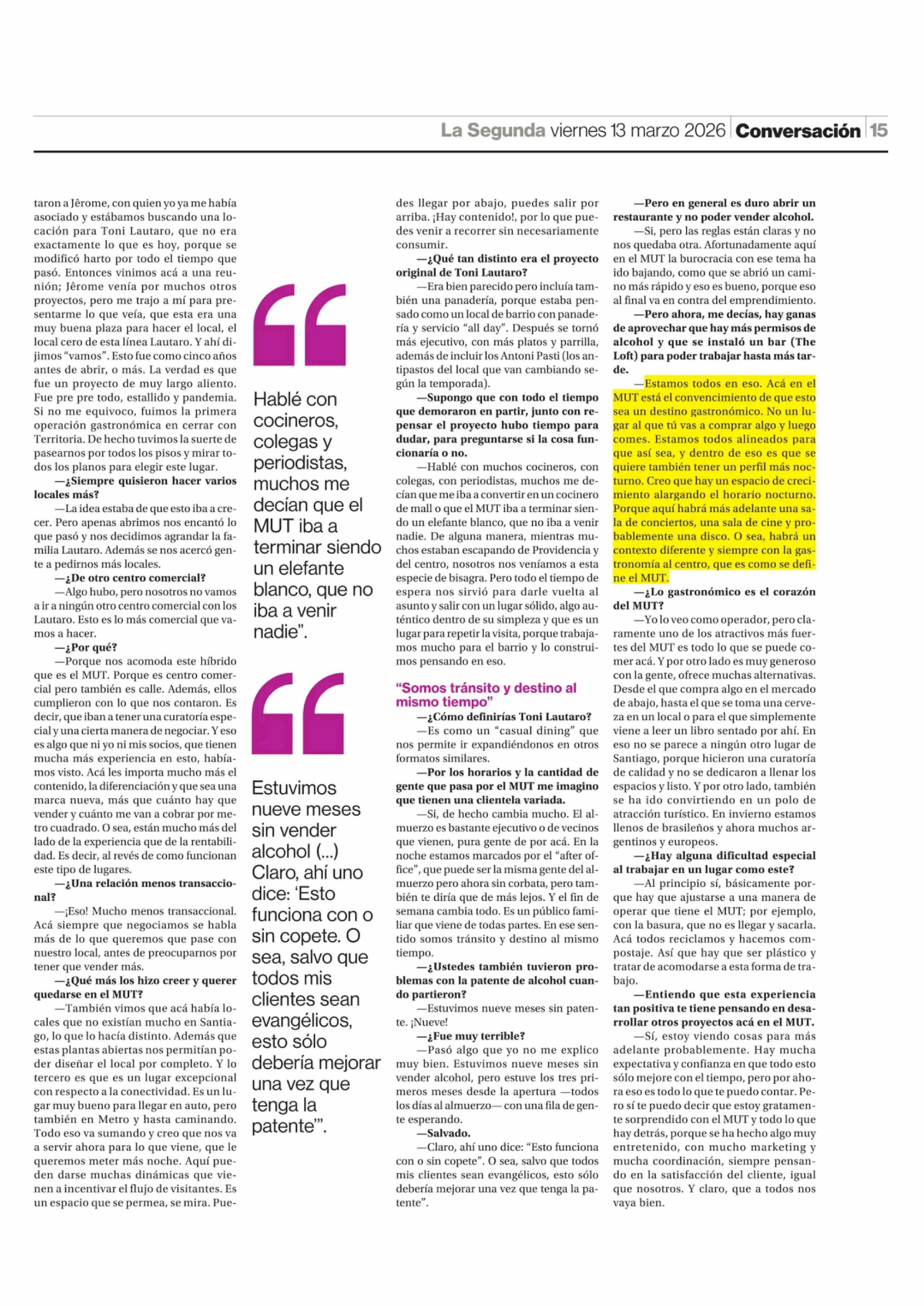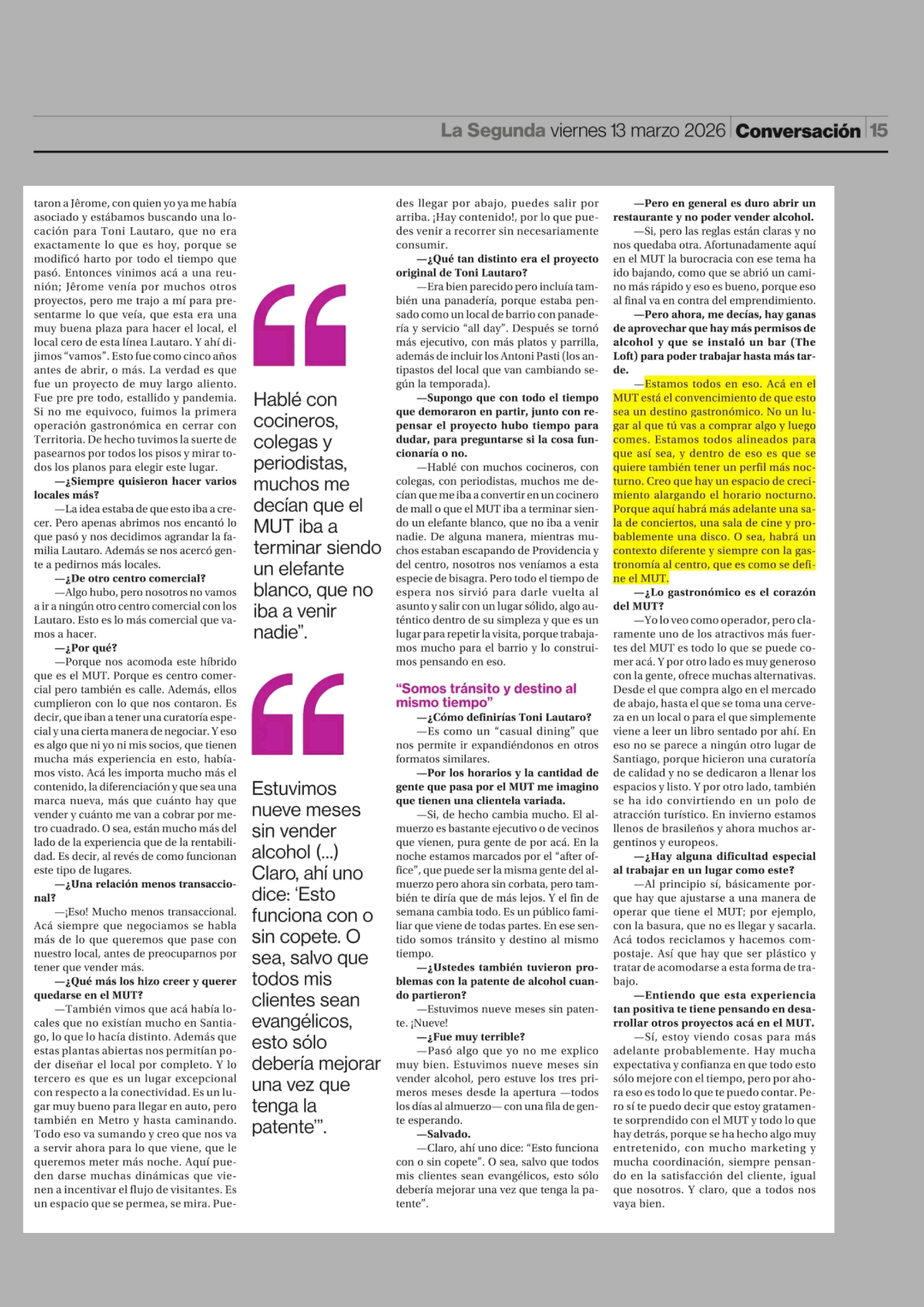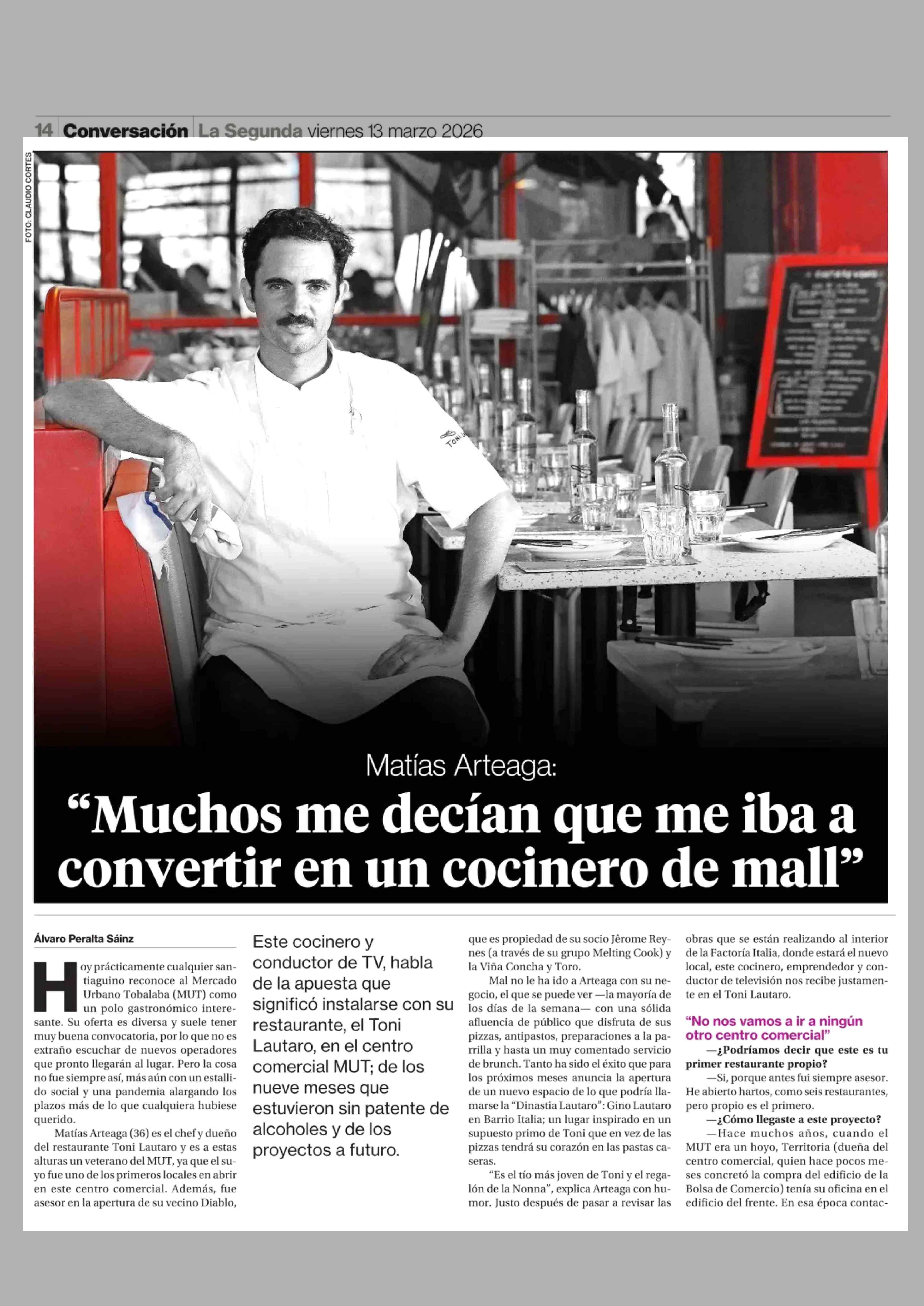 "Muchos me decían que me iba a convertir en un cocinero de mall" 13-03-2026 La Segunda |