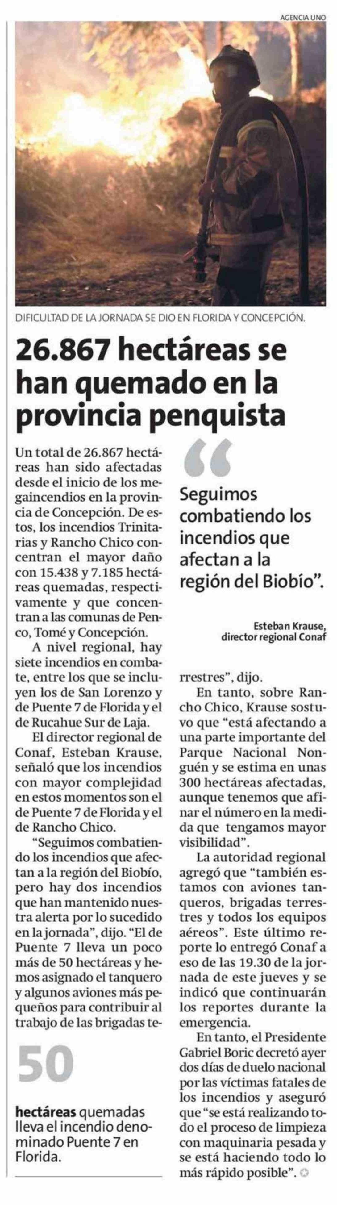 | Título: | 26.867 Hectáreas se han quemado en la provincia penquista |