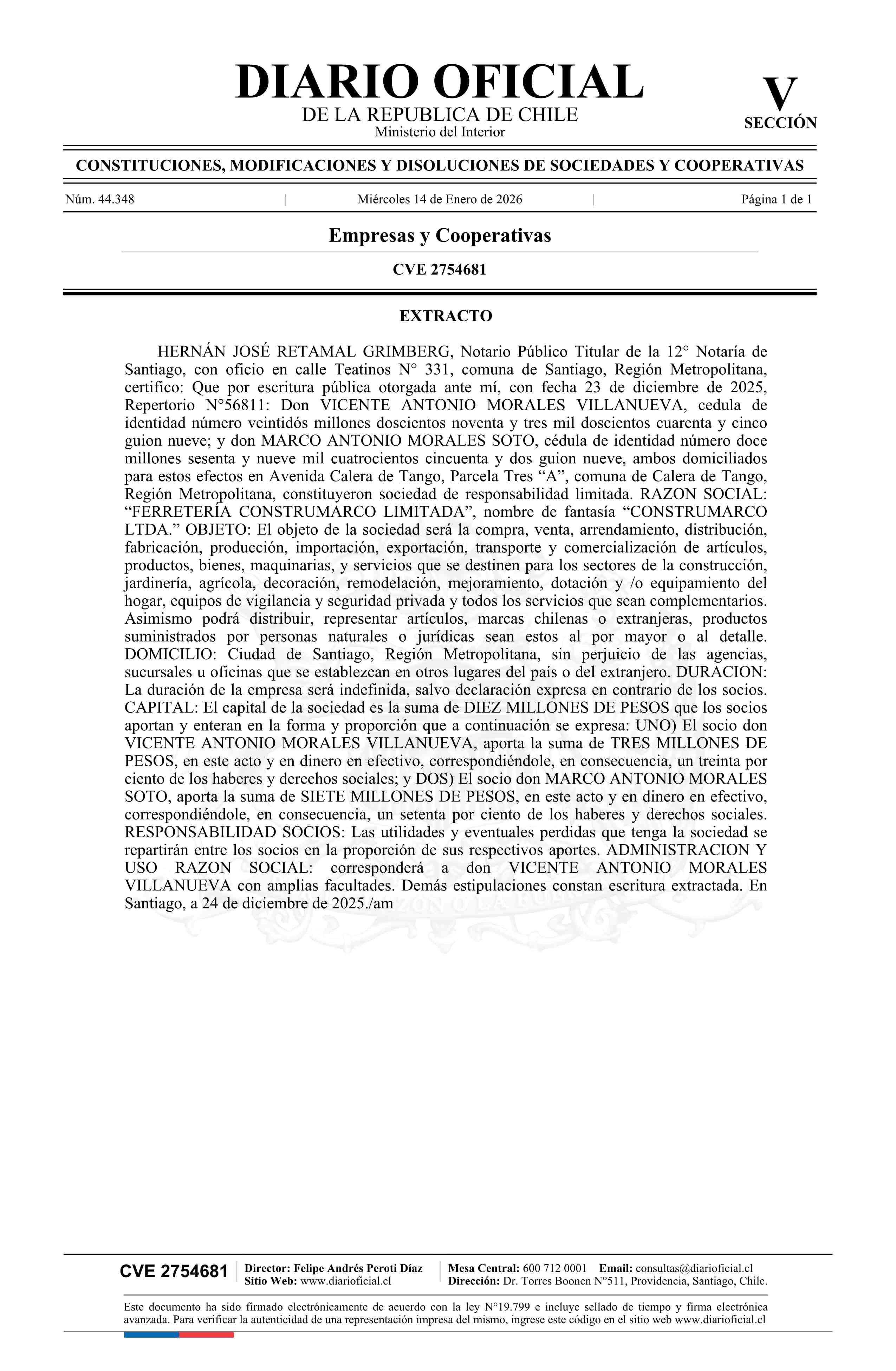 Título: FERRETERÍA CONSTRUMARCO LIMITADA