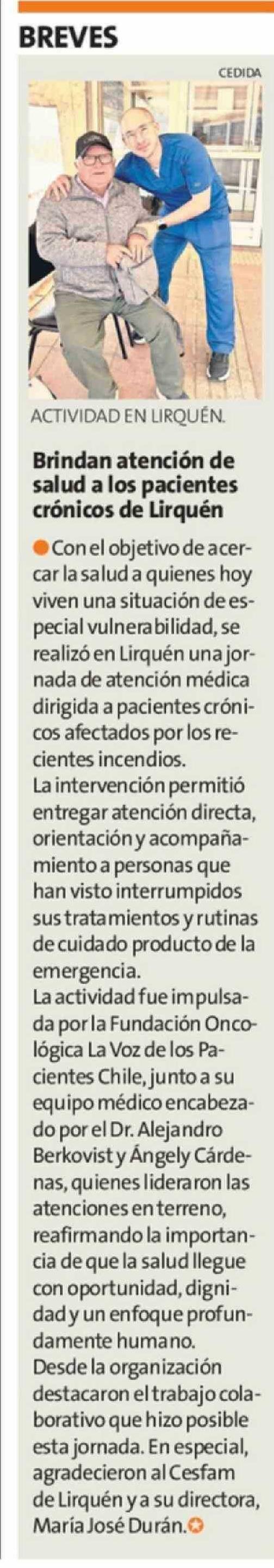 Título: Brindan atención de salud a los pacientes crónicos de Lirquén