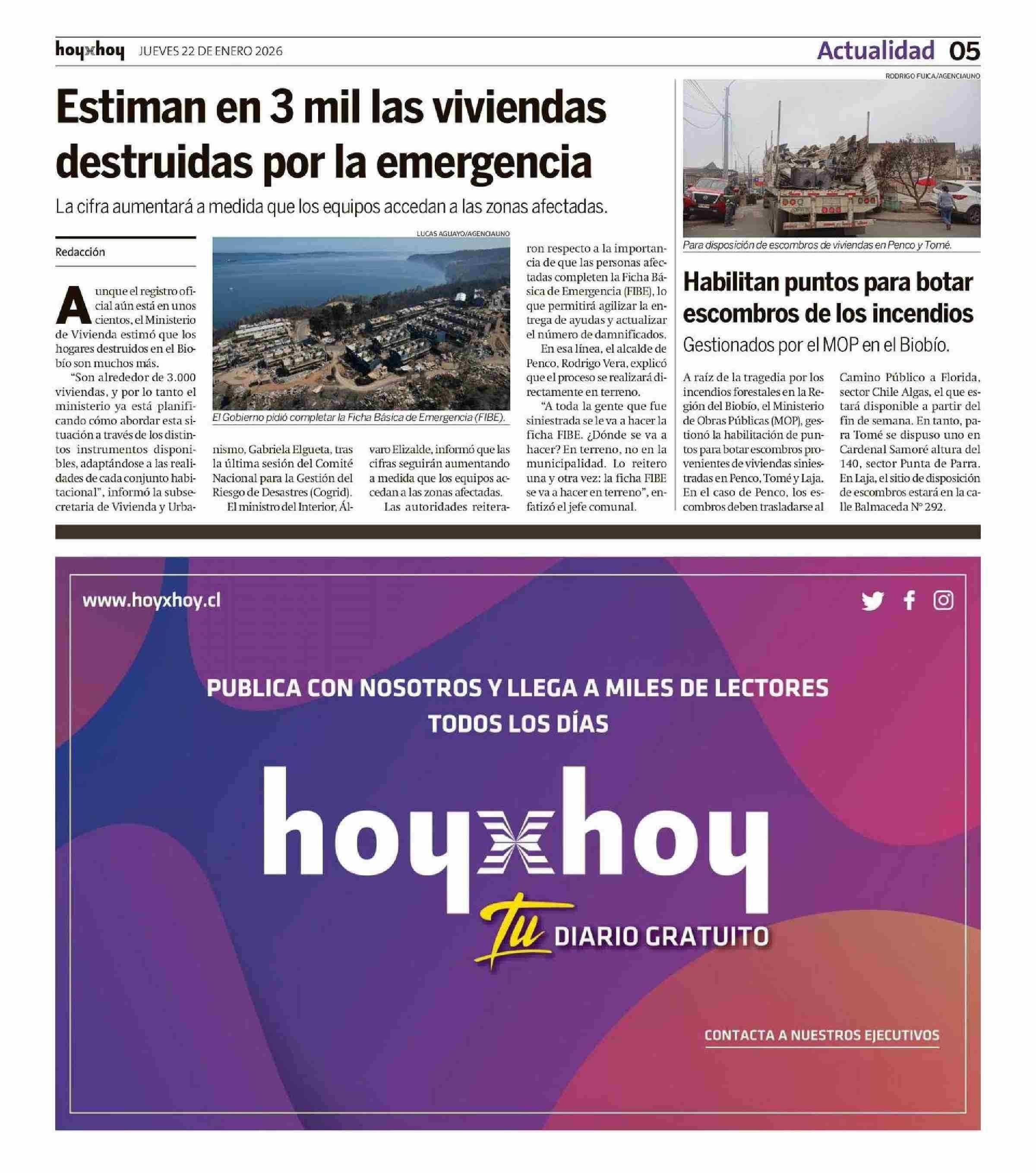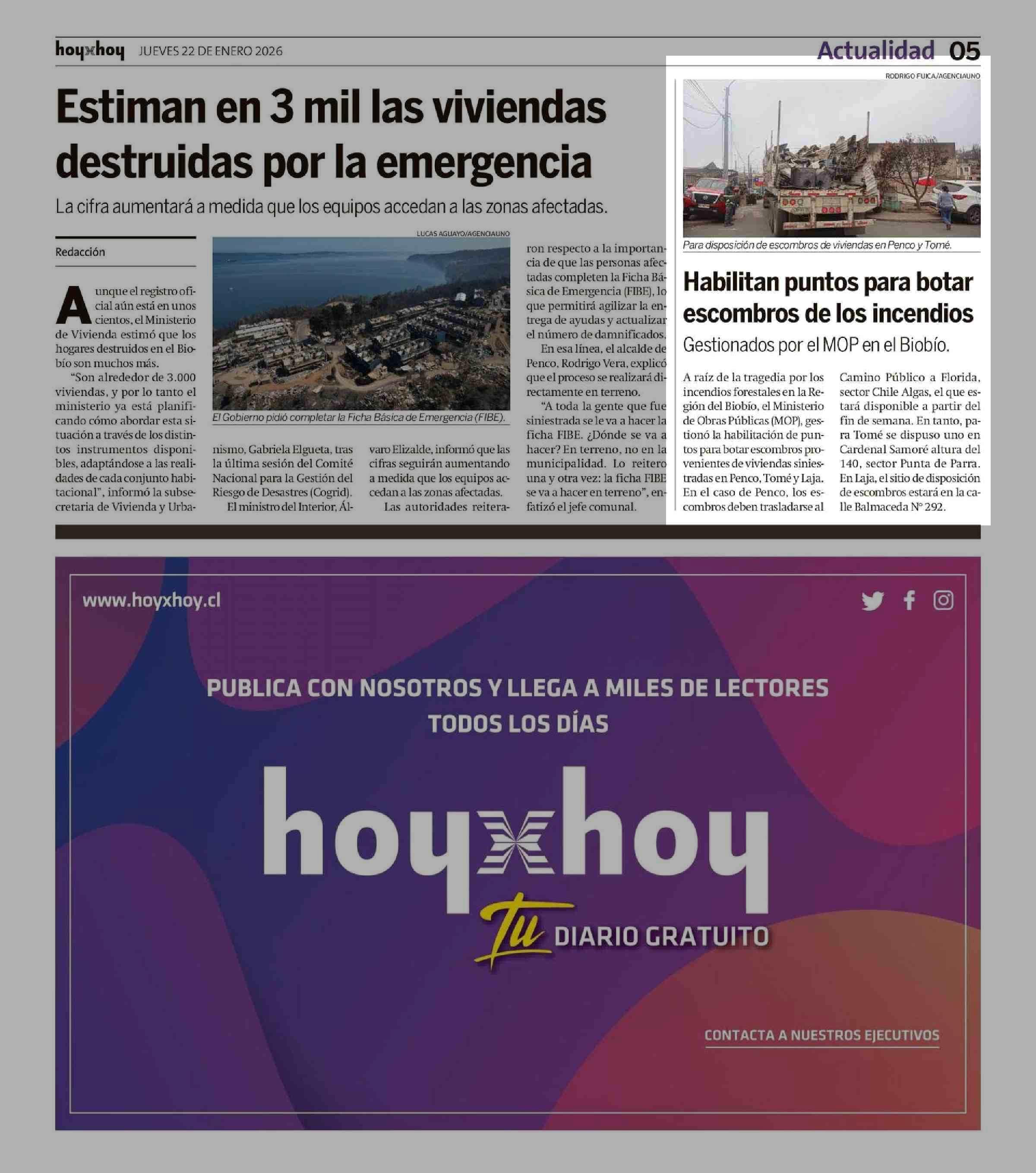 Habilitan puntos para botar escombros de los incendios 22-01-2026 Hoy x Hoy Concepción |