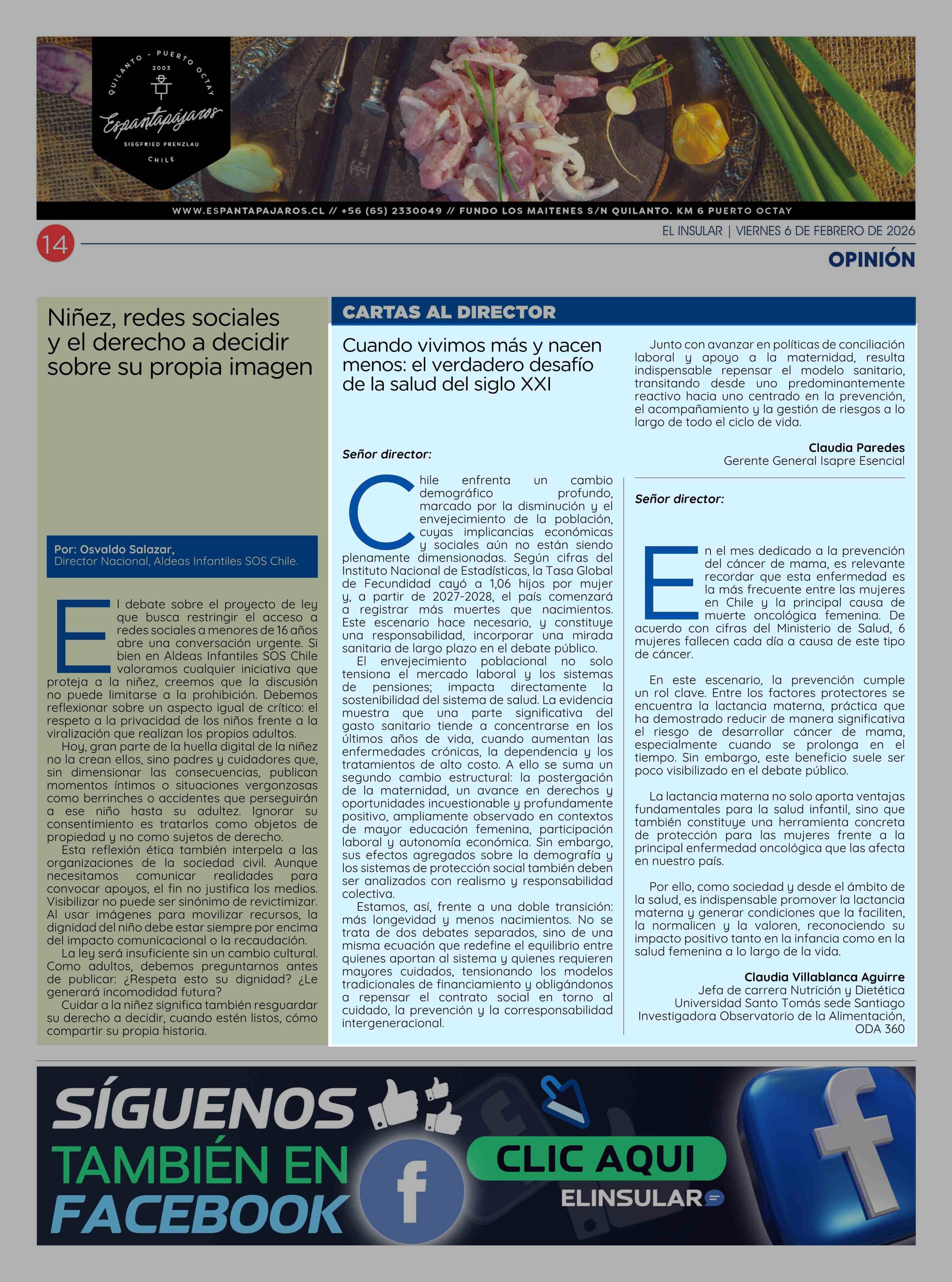Cartas: Cuando vivimos más y nacen menos: el verdadero desafío de la salud del siglo XXI 06-02-2026 El Insular |