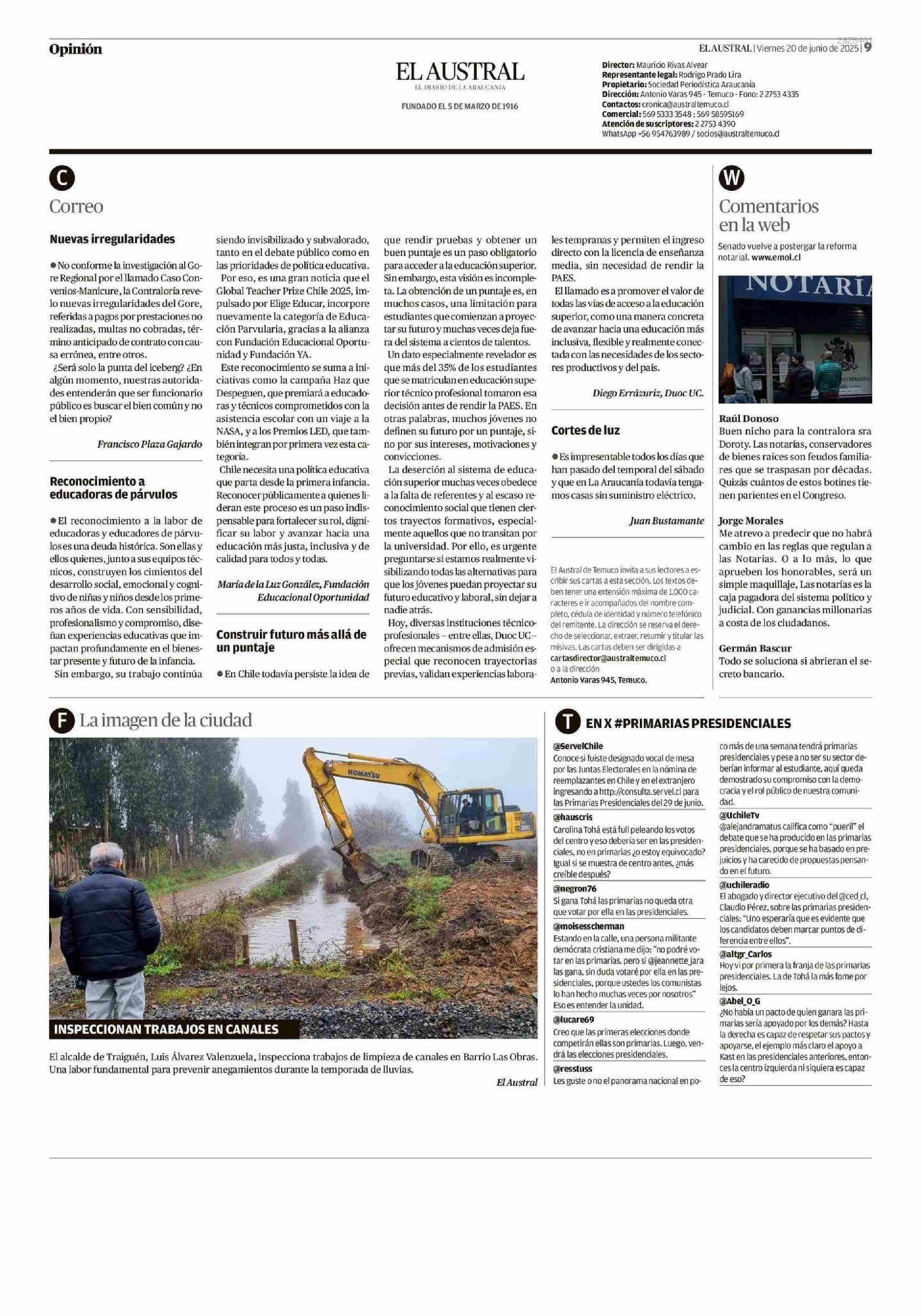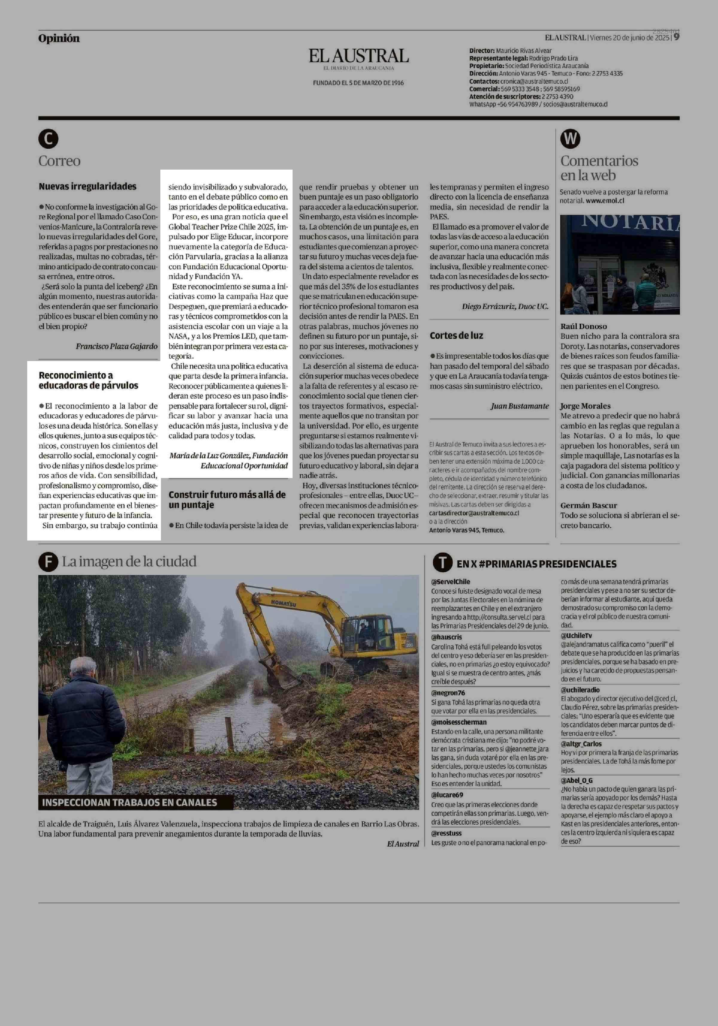 CARTAS: Reconocimiento a educadoras de párvulos 20-06-2025 El Austral de la Araucanía |