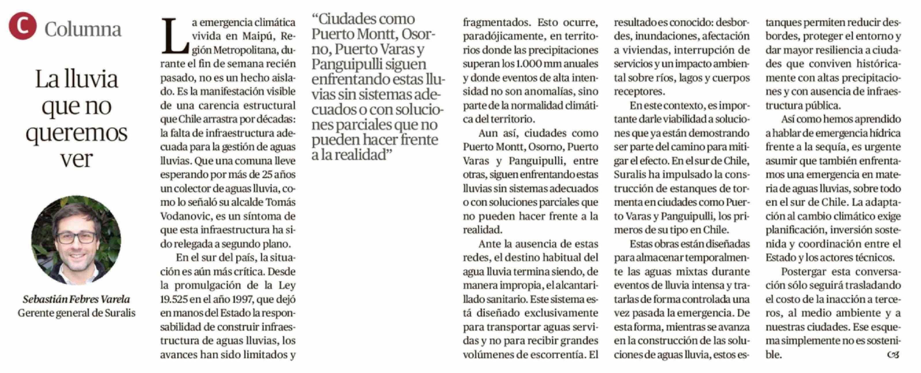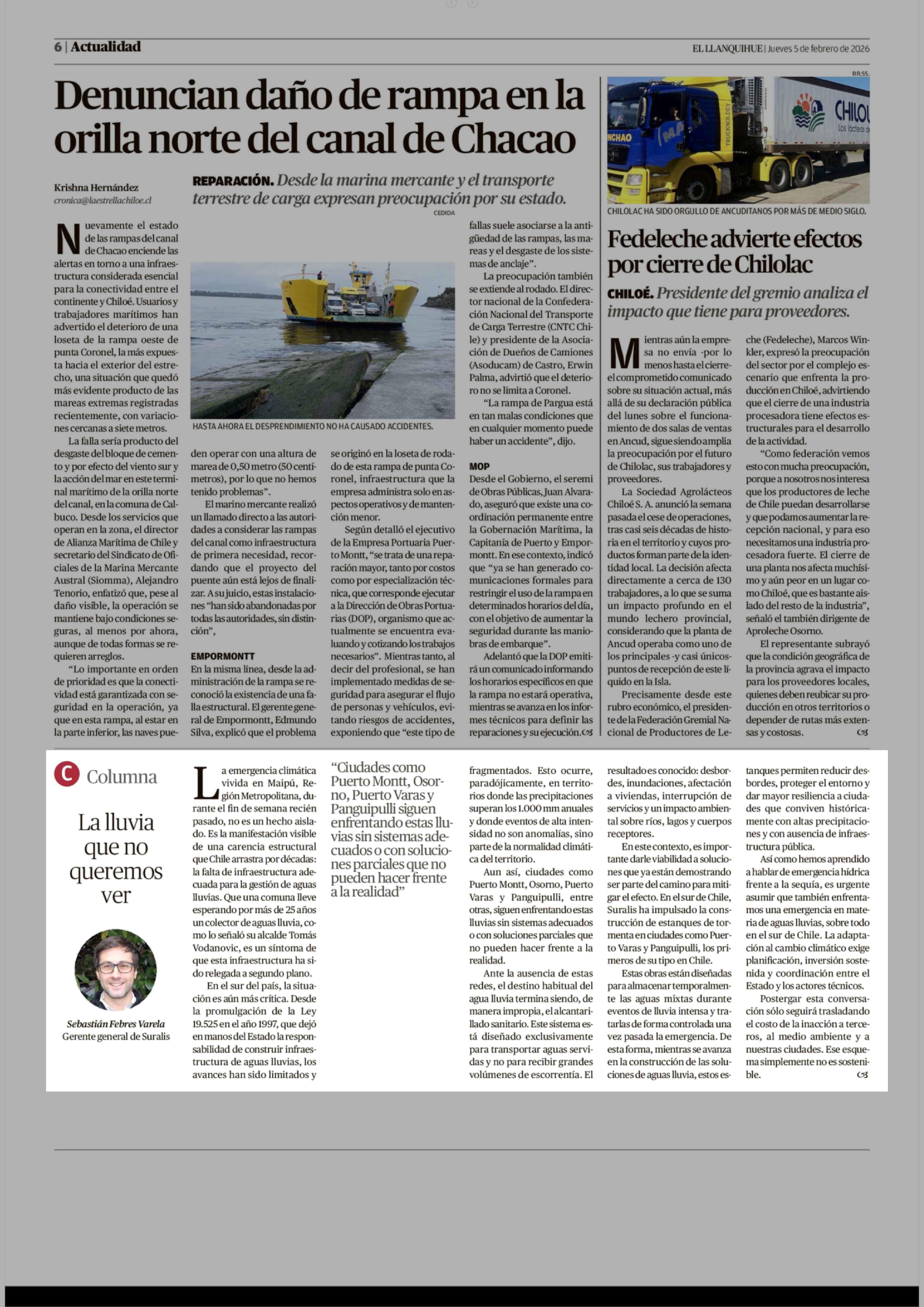 Columnas de Opinión: La lluvia que no queremos ver 05-02-2026 El Llanquihue |